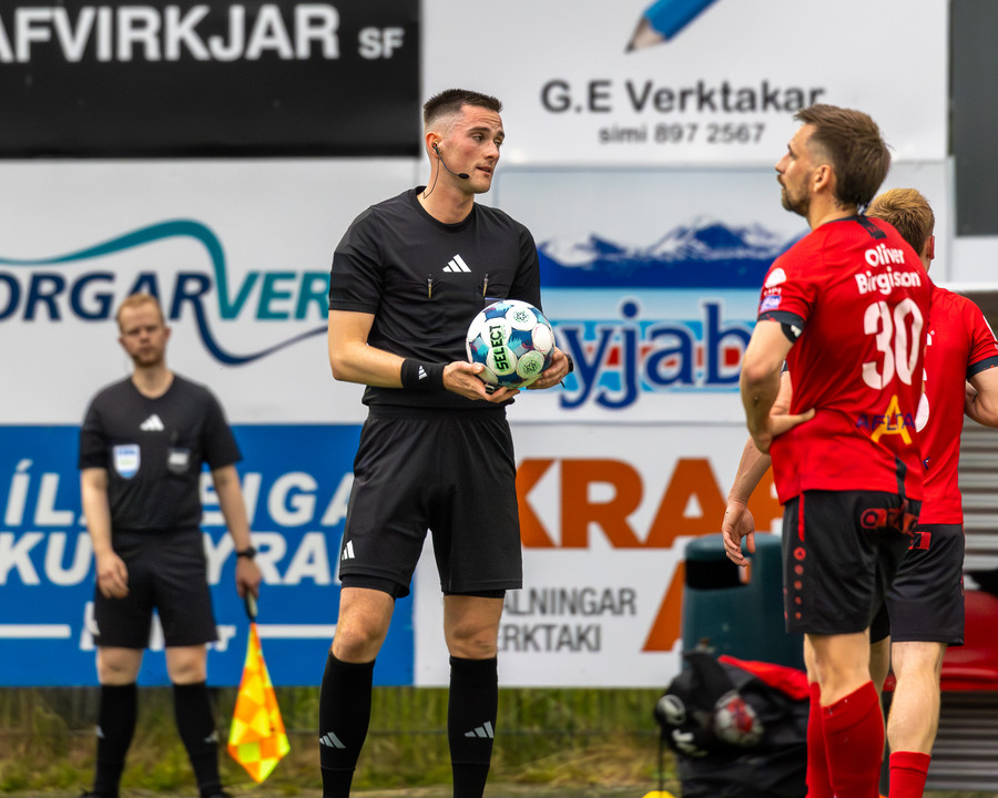 Gunnar Oddur Hafliðason dæmir þennan leik í kvöld en honum til aðstoðar verða þeir Ragnar Þór Bender og Bryngeir Valdimarsson. Fjórði dómari leiksins er Gunnar Freyr Róbertsson og eftirlitsmaður KSÍ er hann Ingi Jónsson.