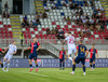 Heimamenn í Vllaznia leika í rauðbláum búningum, minnir á Genoa.
