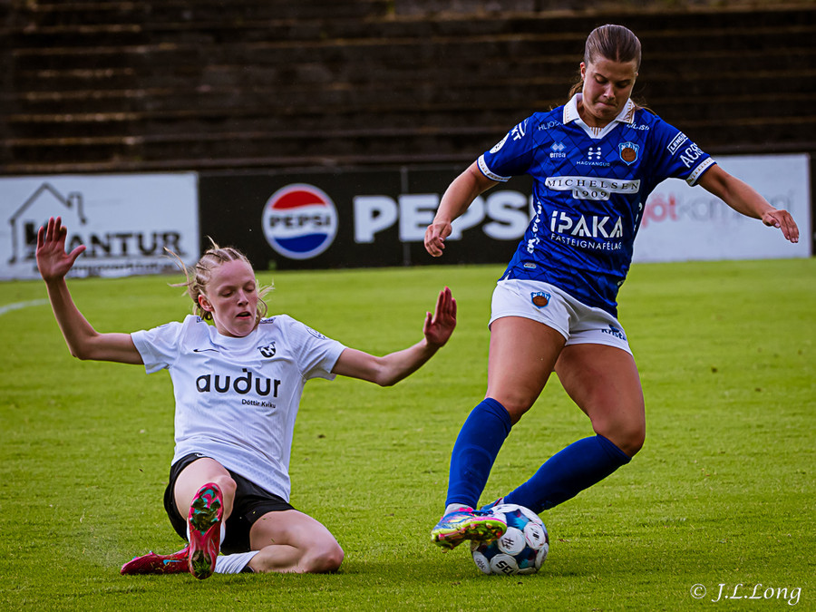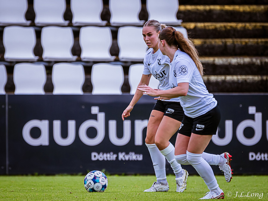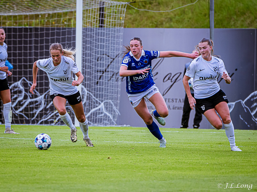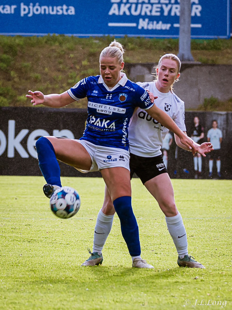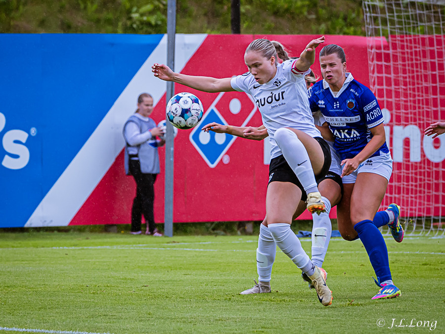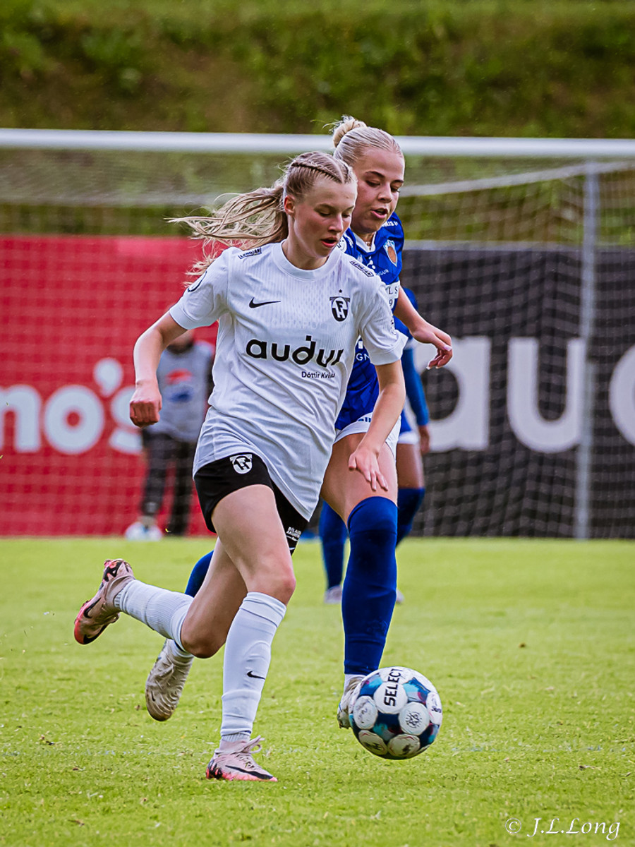 Elísa með góða fyrirgjöf á Valgerði sem á skalla beint á markið og Þóra Rún grípur boltann