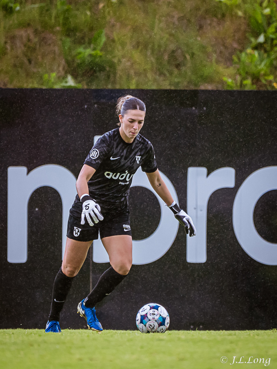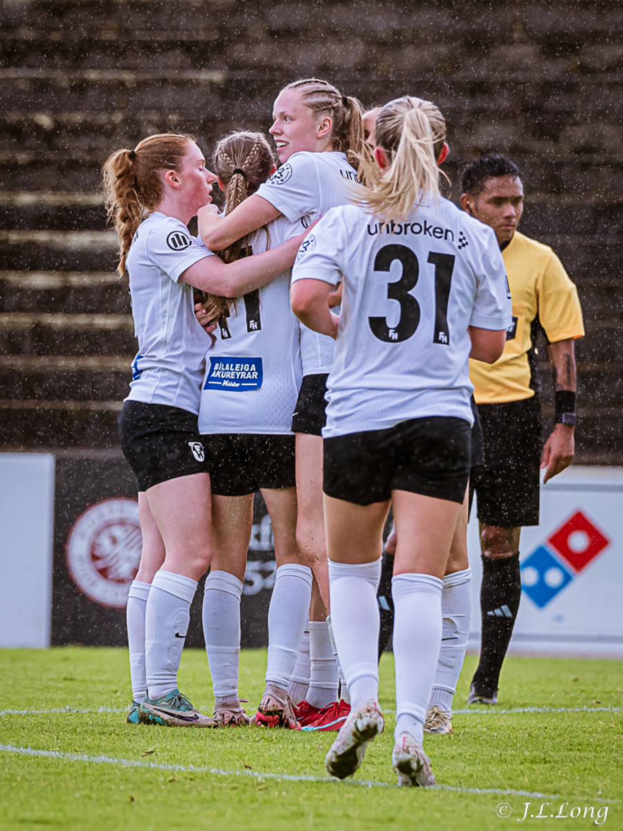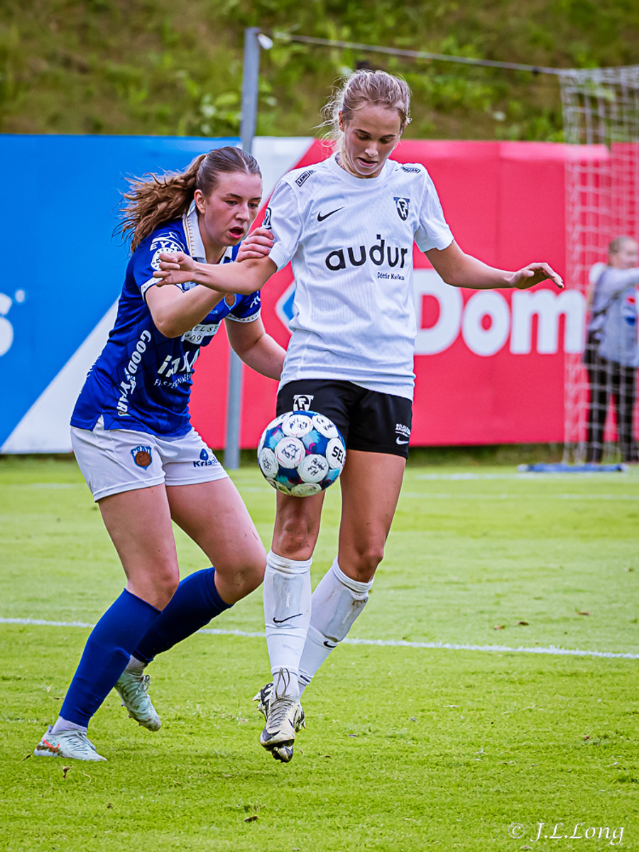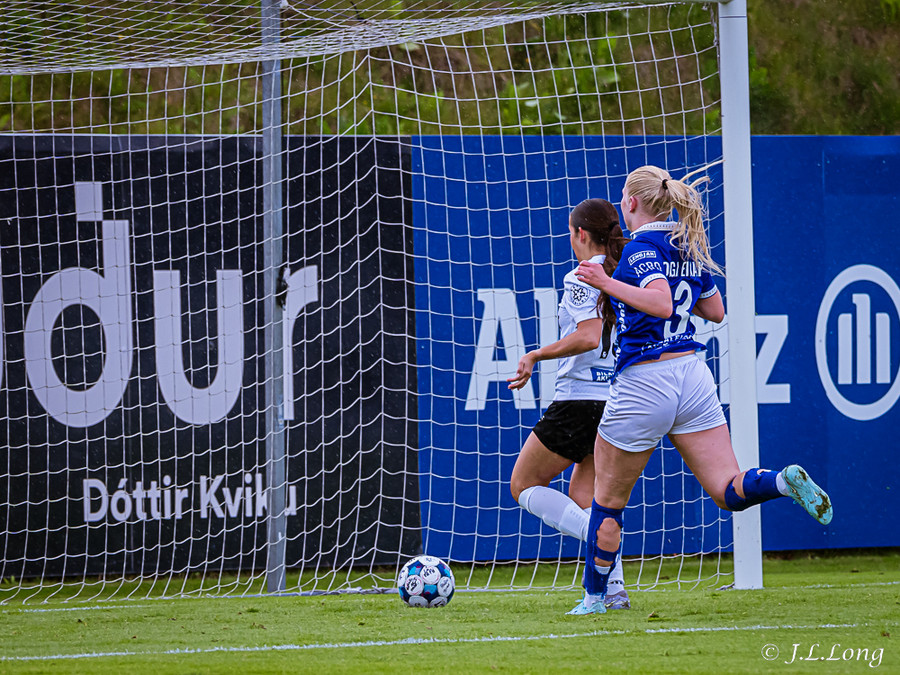 Boltinn kemur fyrir frá Elísu á vinstri kantinum beint á Maya Hansen sem potar boltanum framhjá Þóru í marki Frammara