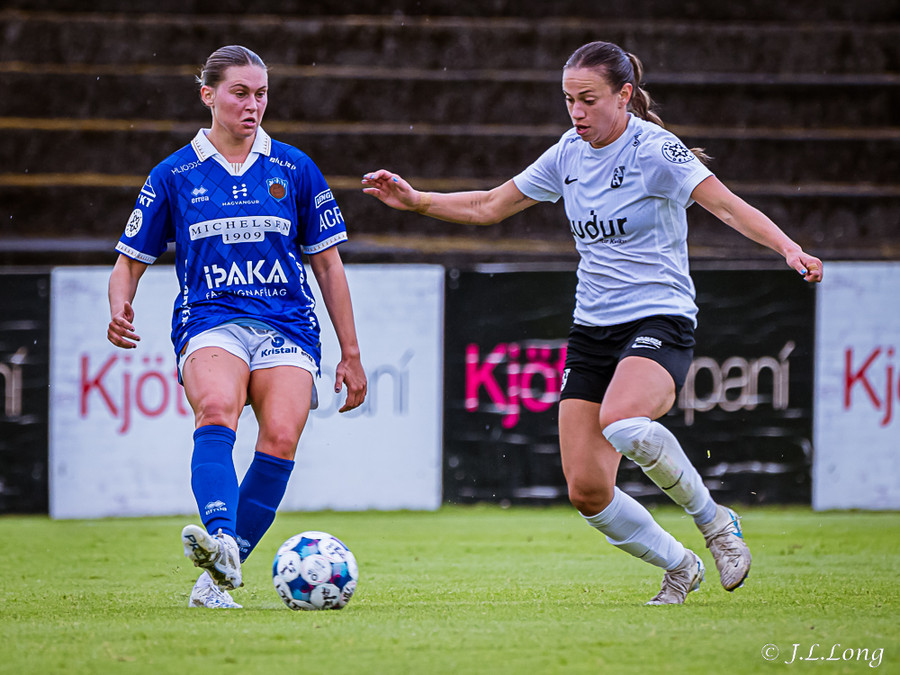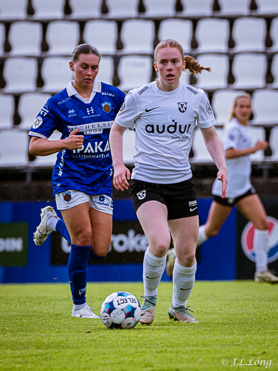 Deja með flotta fyrirgjöf sem endar á Valgerði inn í teig en neglir boltanum yfir