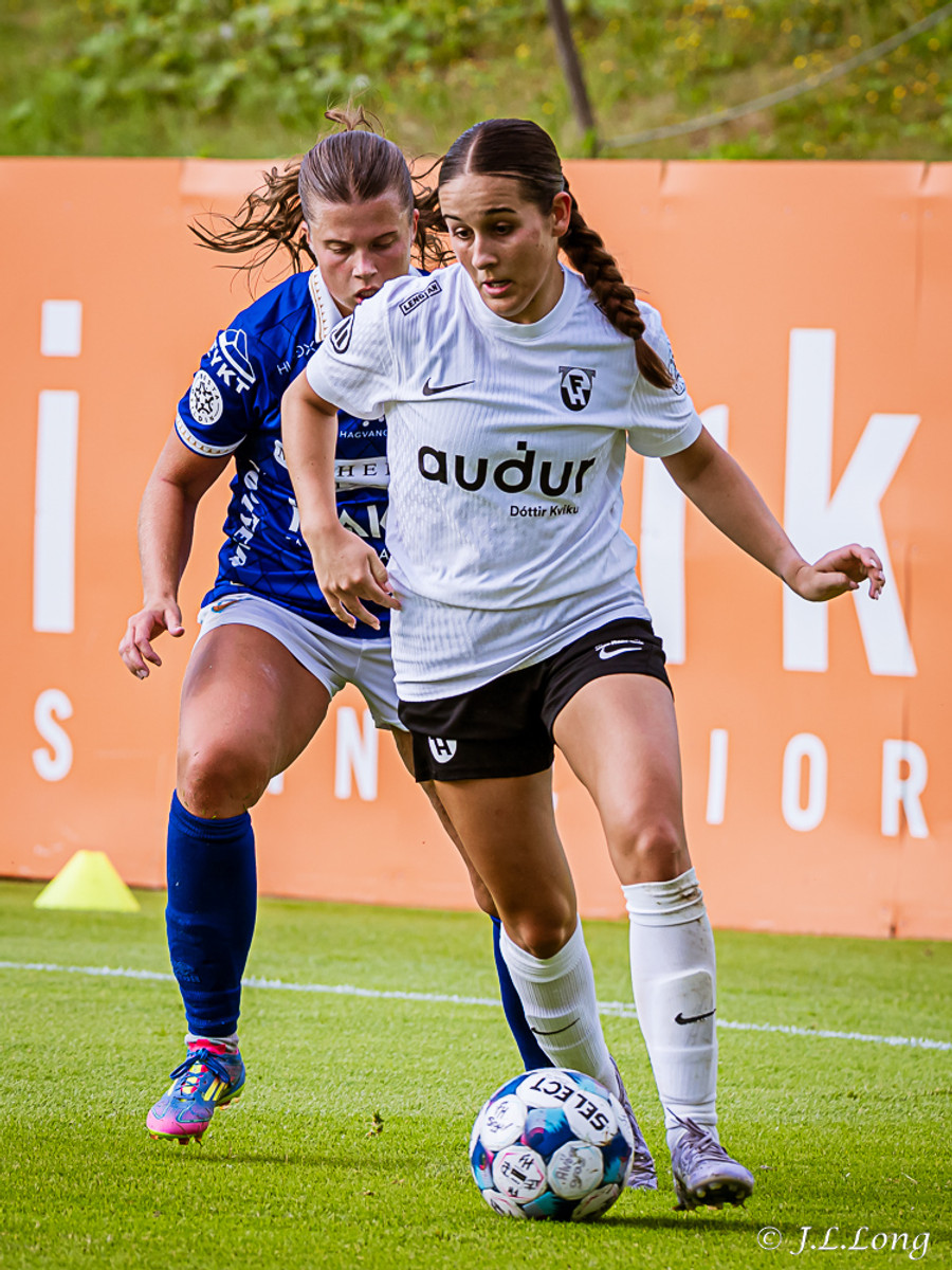 Valgerður með flotann bolta inn í teig sem endar á Andreu sem á skot í varnarmann og FH fær annað horn