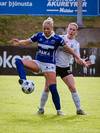 Maya Hansen með góðan bolta inní á Valgerði sem á fast skot á markið en Þóra Rún ver þetta í horn.
