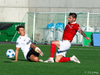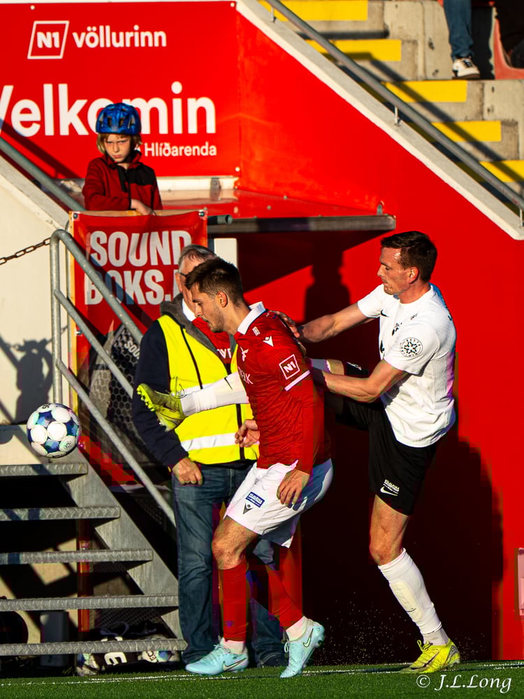 Úlfur með fastan bolta fyrir teig sem kemur aðeins fyrir aftan Sigurð Bjart. Hann reynir þá bara að setja hælinn í boltann en nær ekki að stýra boltanum í átt að marki.