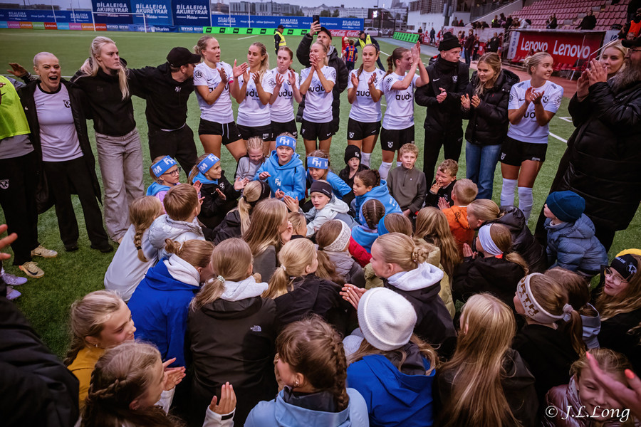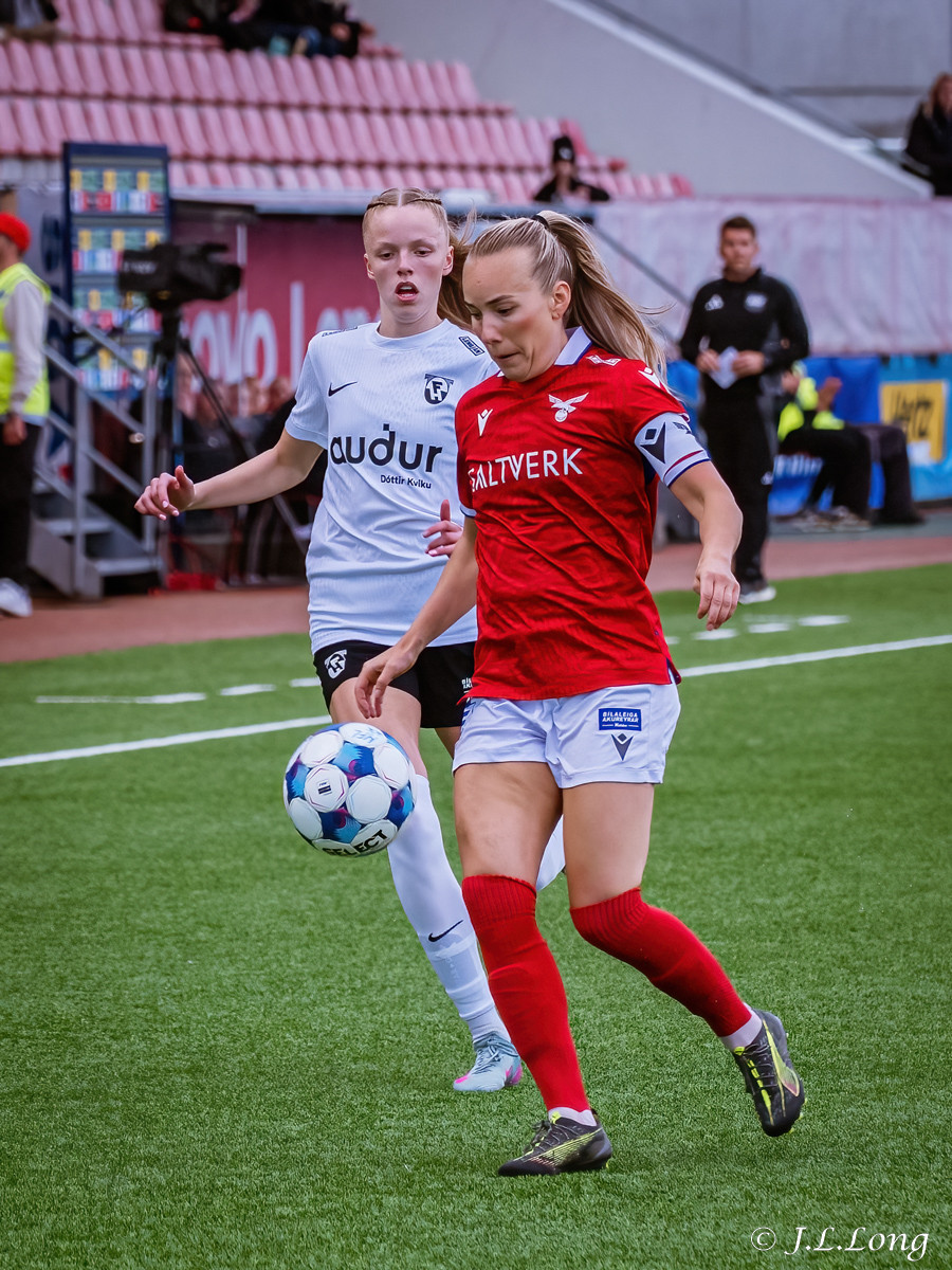 FH leiðir hér 1-2 í hálfleik, hafa bara verið miklu betri eftir því sem leið á leikinn, í raun óheppnar að hafa ekki náð fleiri mörkum inn.