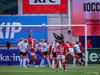 Katla María á skalla í þverslánna og hver önnur en Maya Hansen er síðan mætt í frákastið og stangar hann inn