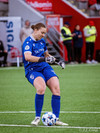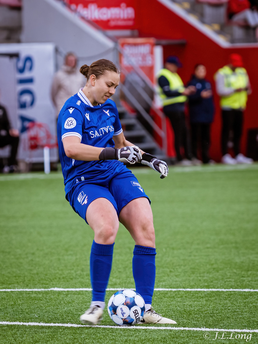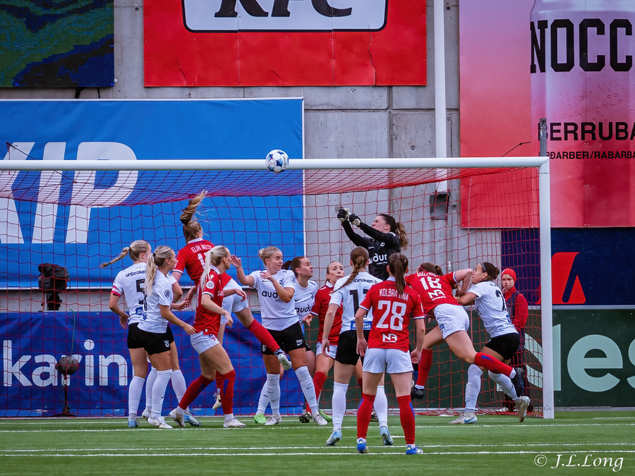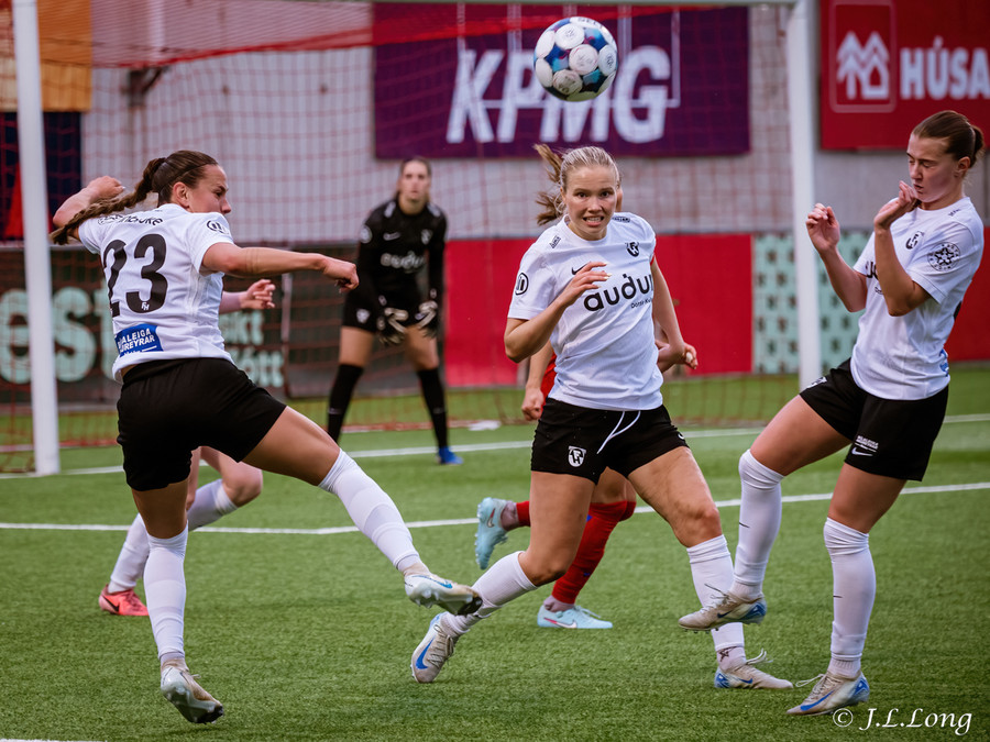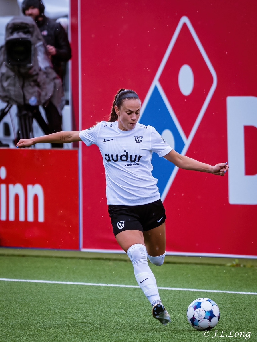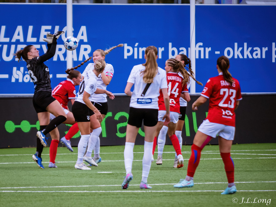 Stórhættuleg hornspyrna hjá Fanndísi sem Macy Enneking þarf að hafa sig alla við að verja