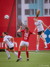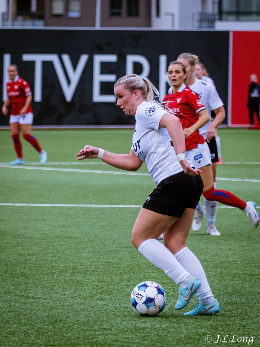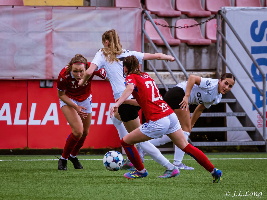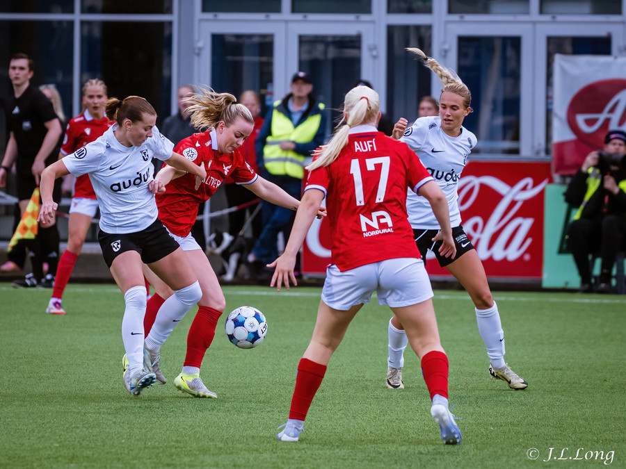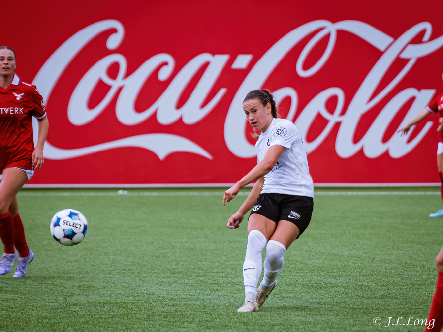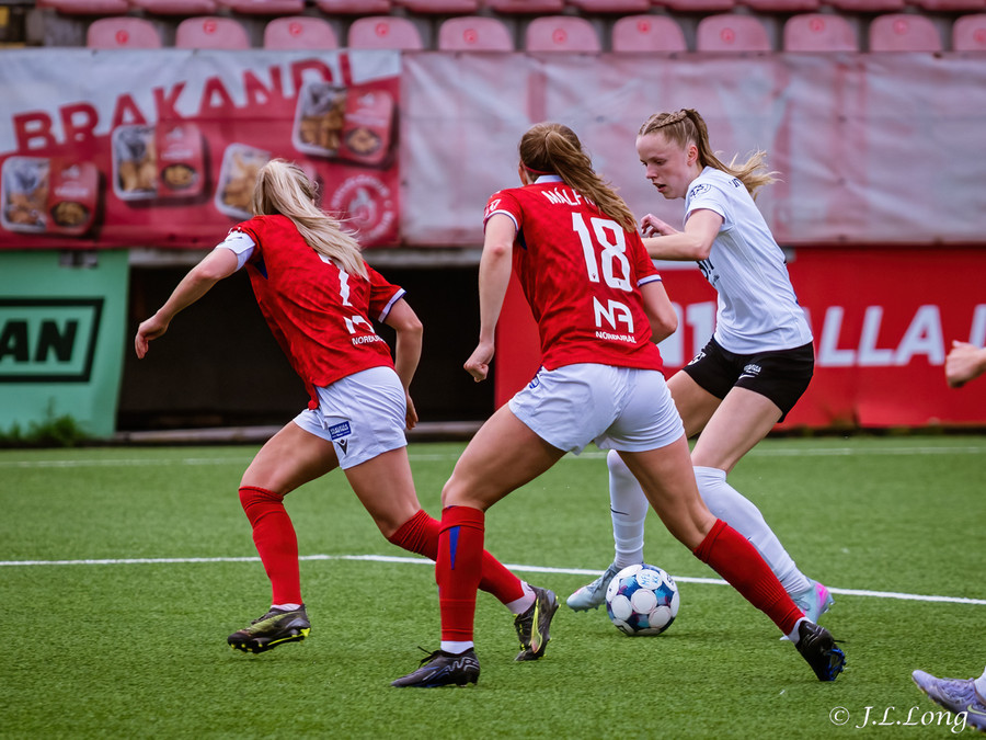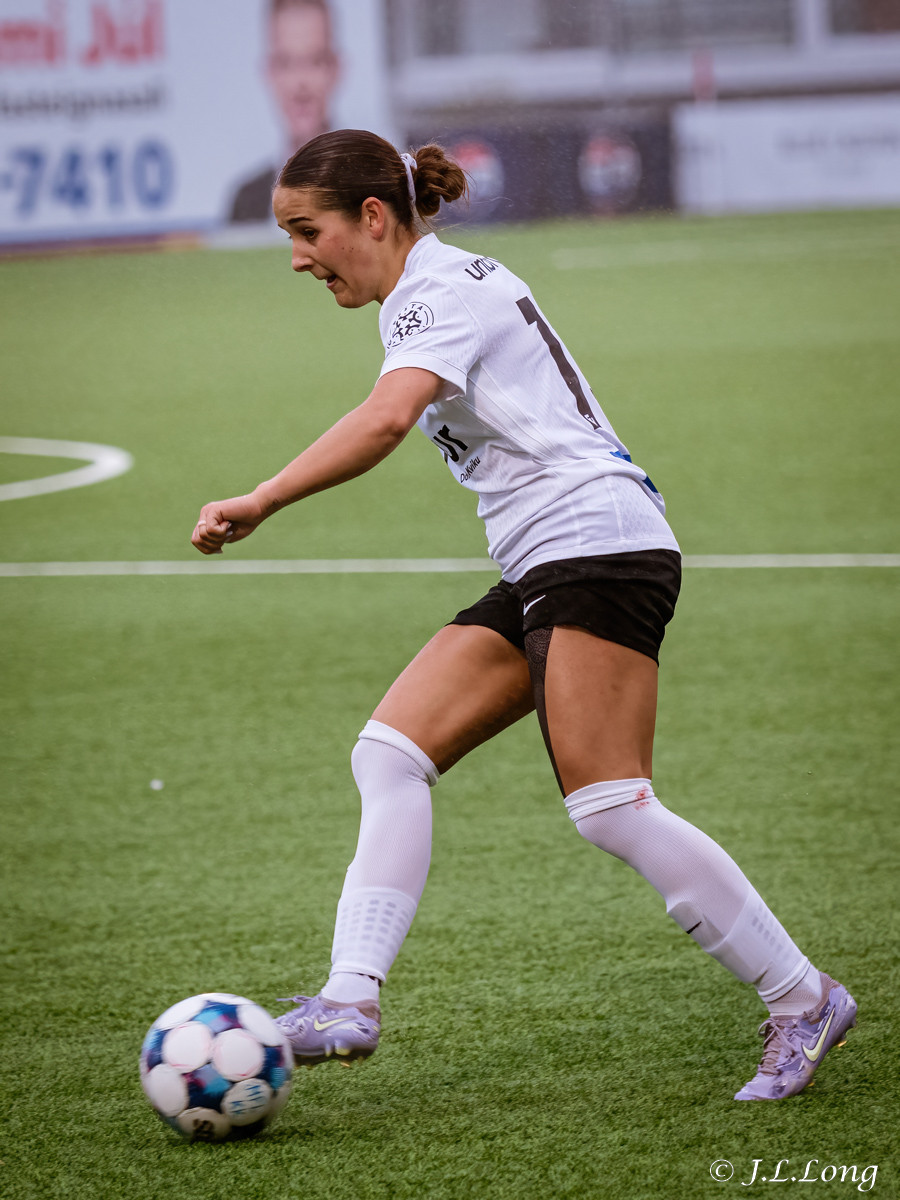 Maya stingur boltanum inn á Margréti Brynju hún með gabbhreyfingarnar á hreinu endar síðan með lélegu skoti eða fyrirgjöf? Eiginlega ómögulegt að segja til um hvort... Boltinn allavega útaf