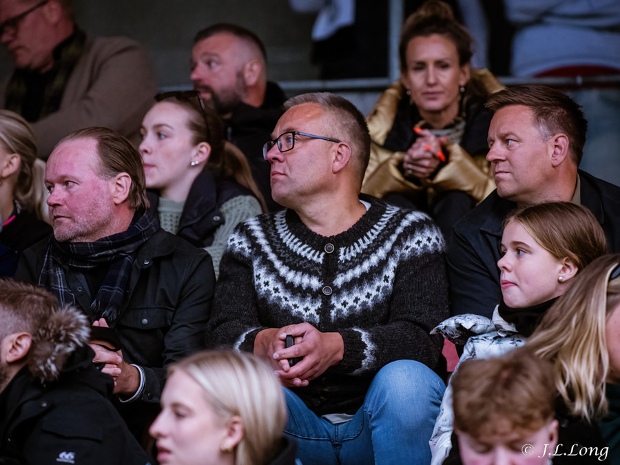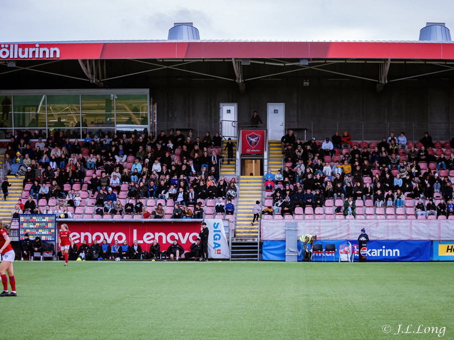 FH stuðningsmenn hafa greinilega fjölmennt á leikinn að styðja sínar konur, heyrist hér hátt áfram FH
