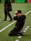 Þetta var skrítið... Enneking fær krefjandi sendingu til baka, þarf að hafa sig alla við um að ná henni og fellur til jarðar eeeeeeen nær þó að halda boltanum inn á