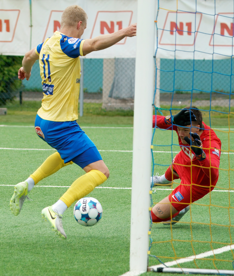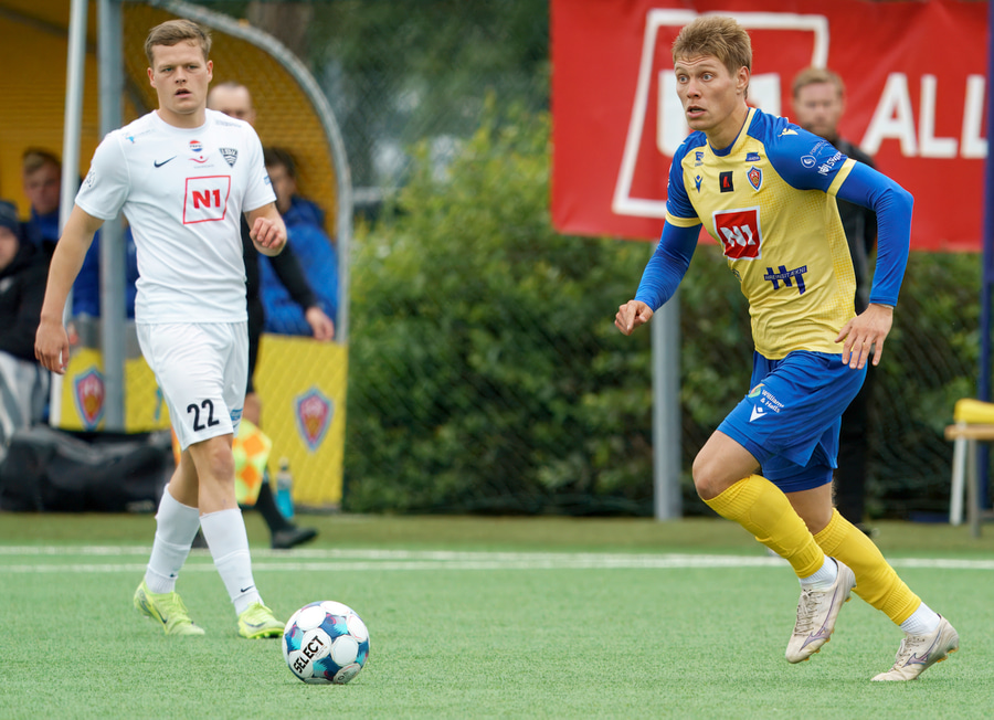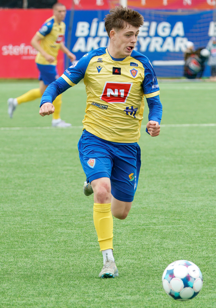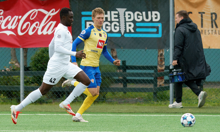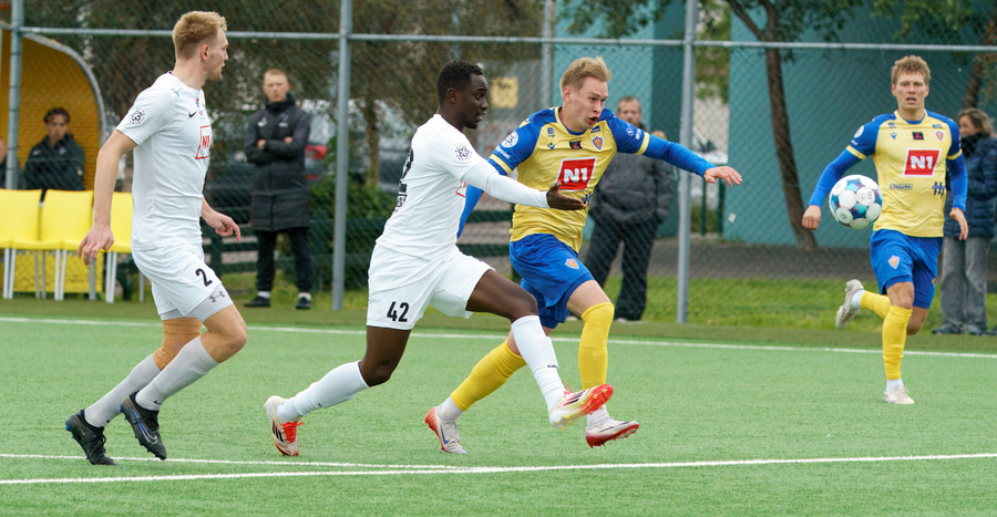 Hallgrímur Mar gerir gríðarlega vel í að lauma boltanum inná teiginn á Mikael Breka sem að er Matthias Edeland neglir niður og Sigurður Hjörtur dæmir vítaspyrnu.