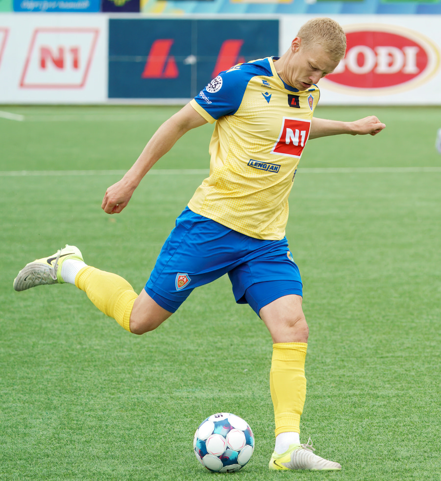 Stuttu síðar er Oliver alltof seinn í Steinþór Má, en sleppur með spjald.