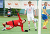 Eins og svo oft áður ver markmaðurinn öflugi, en Dagur Ingi mætir í kjölfarið og potar boltanum í netið. 1-0!