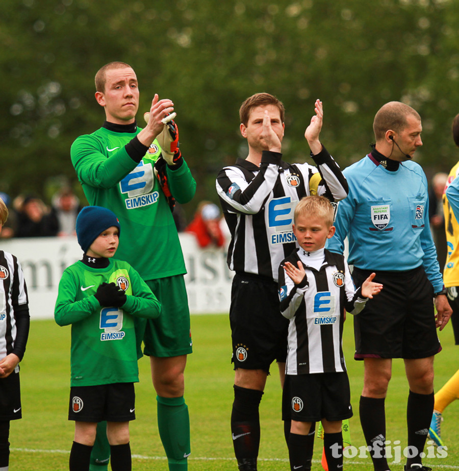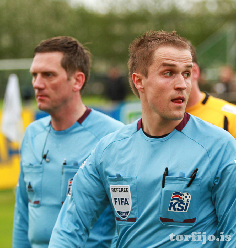 Þá hljómar Heyr mína bæn og Gunnar Jarl Jónsson, dómari, leiðir menn inn á völlinn.