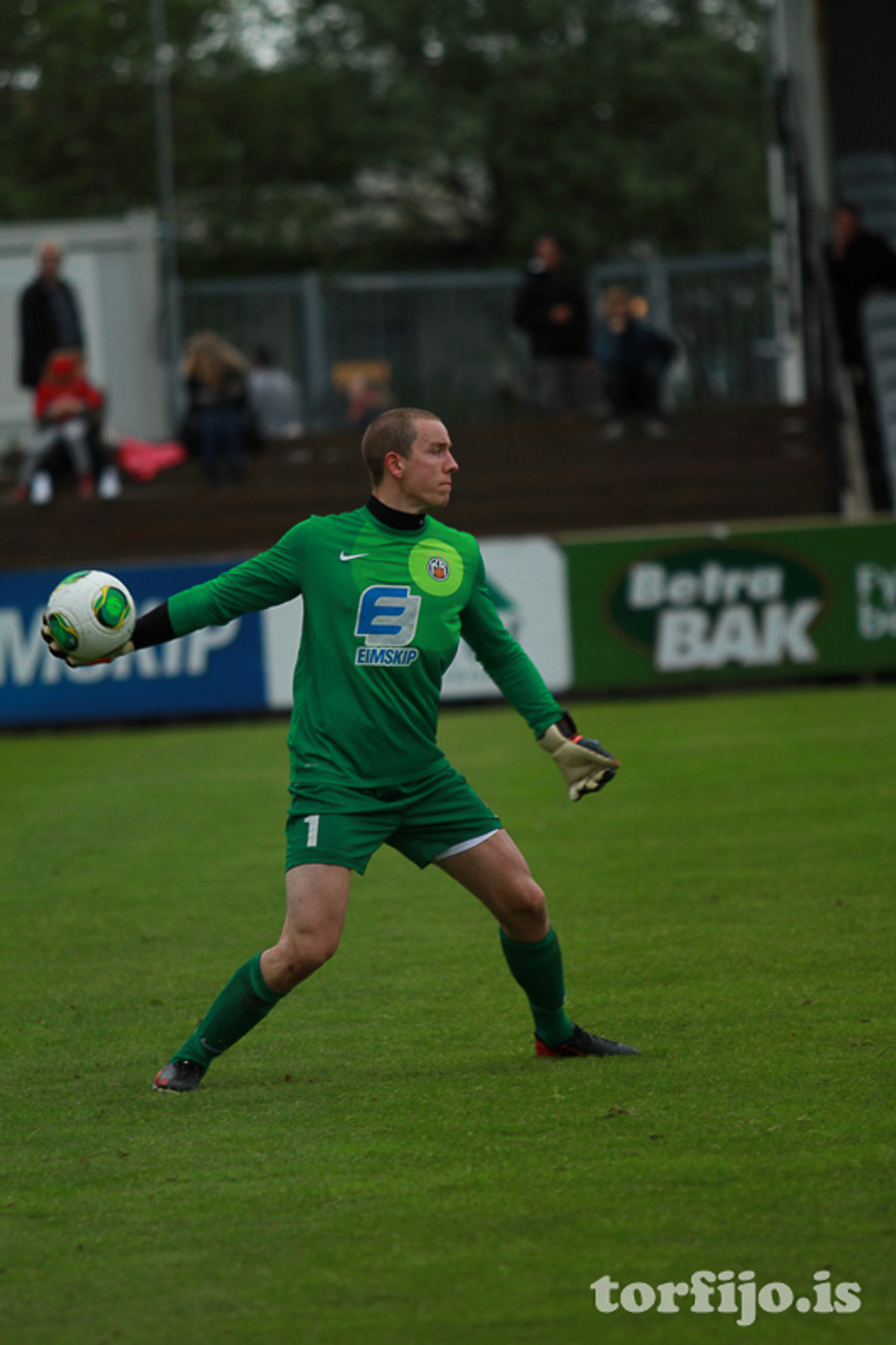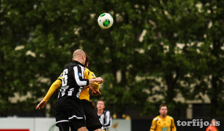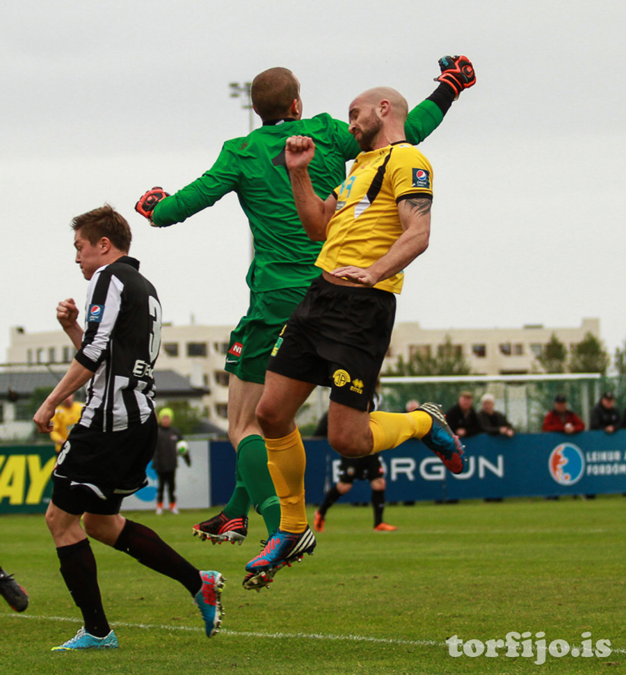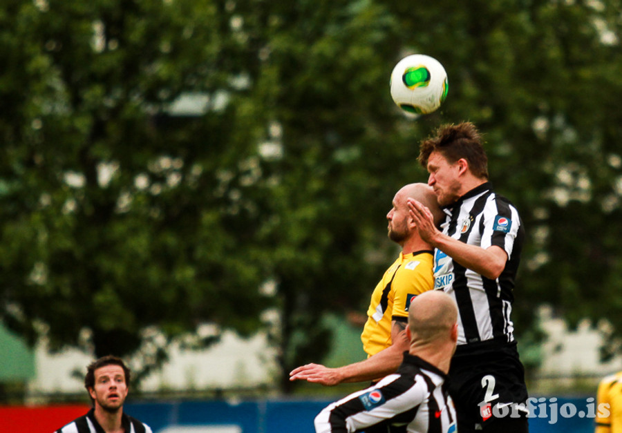 Grétar á skalla af nærstönginni eftir hornspyrnu Atla Sigurjónssonar, Árni blakar honum yfir.