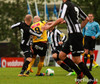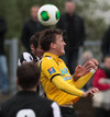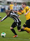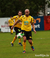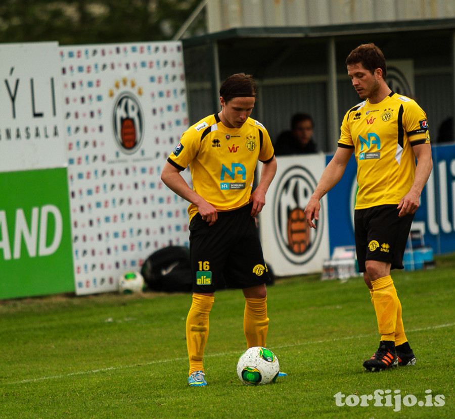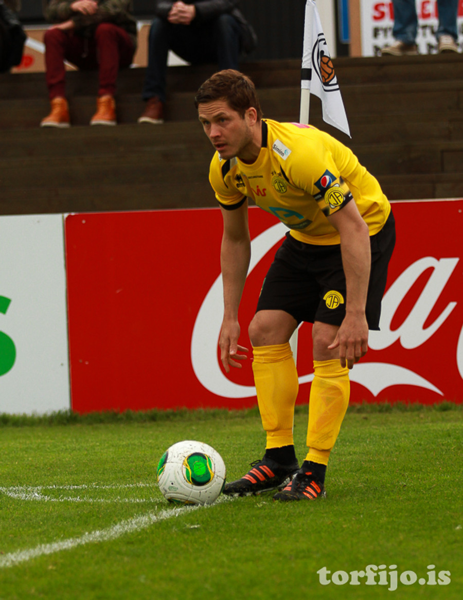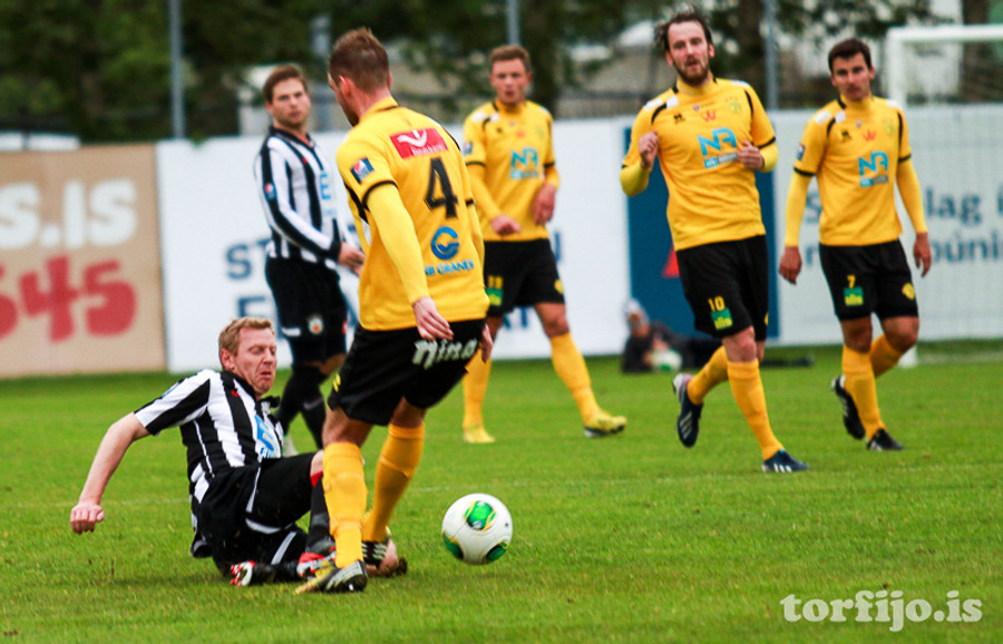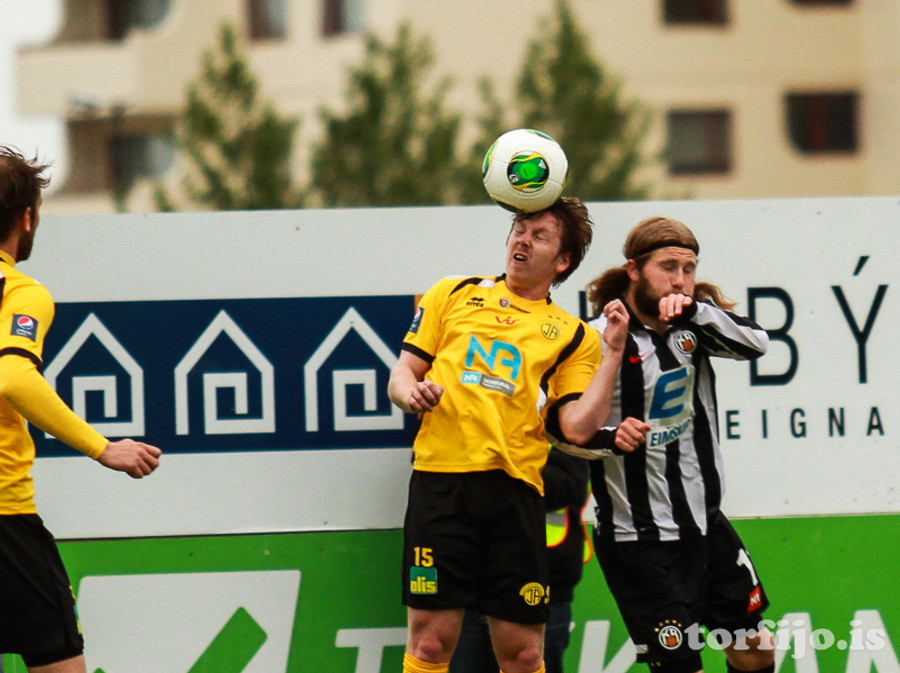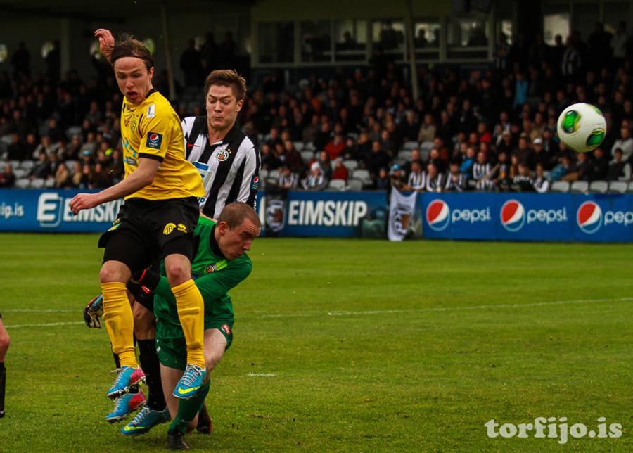 Grétar á skalla af nærstönginni eftir hornspyrnu Atla Sigurjónssonar, Árni blakar honum yfir.