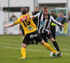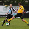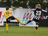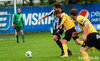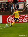 Óskar Örn fær góða sendingu inn fyrir en klúðrar dauðafæri. Skotið beint á Árna Snæ í markinu.