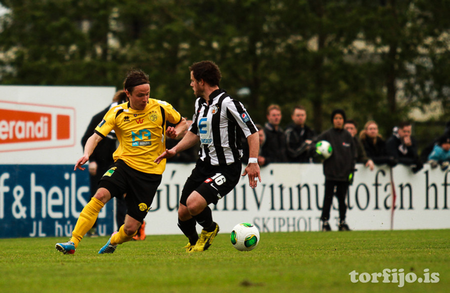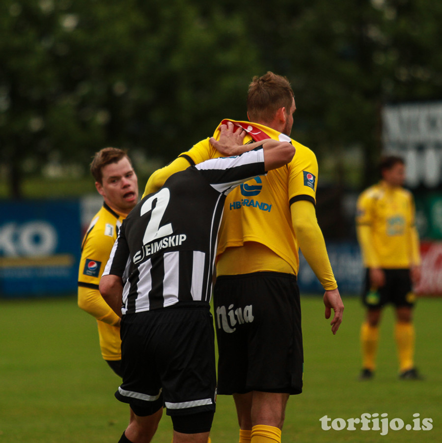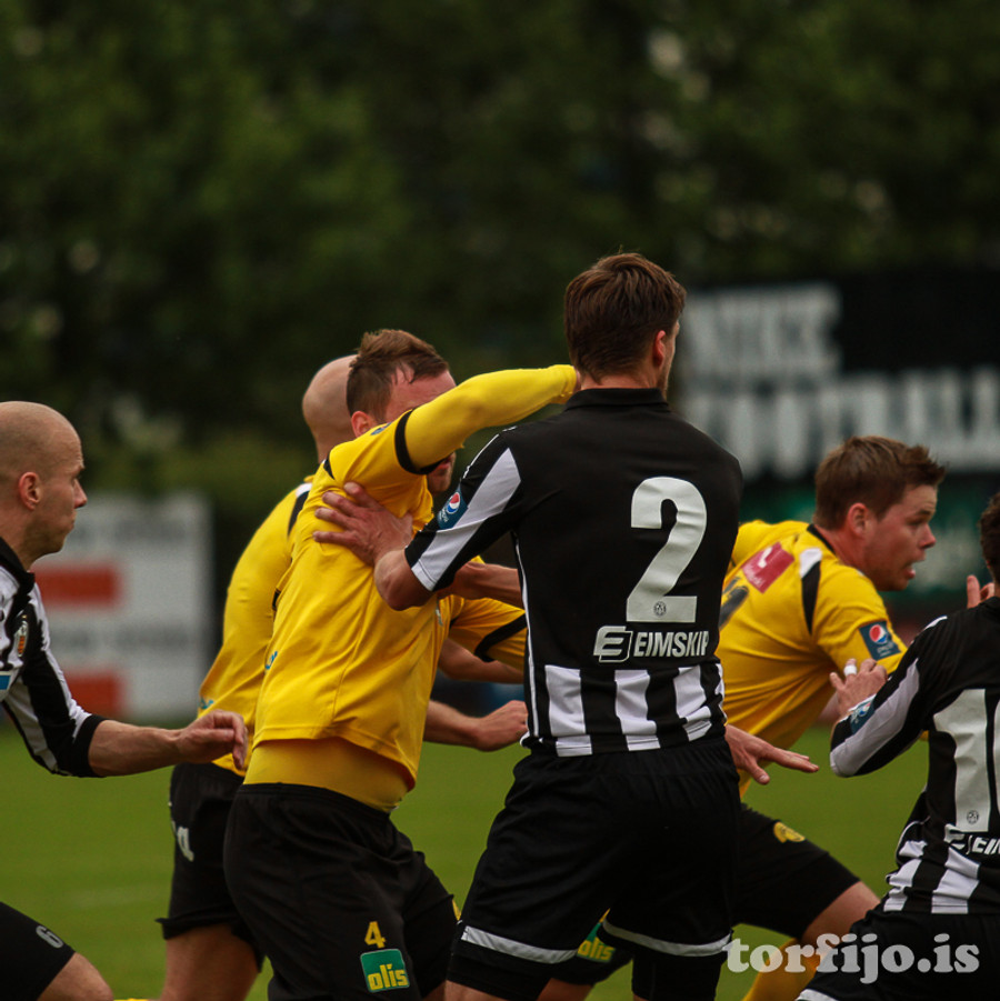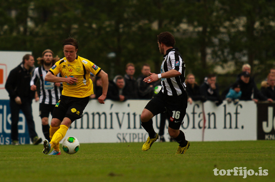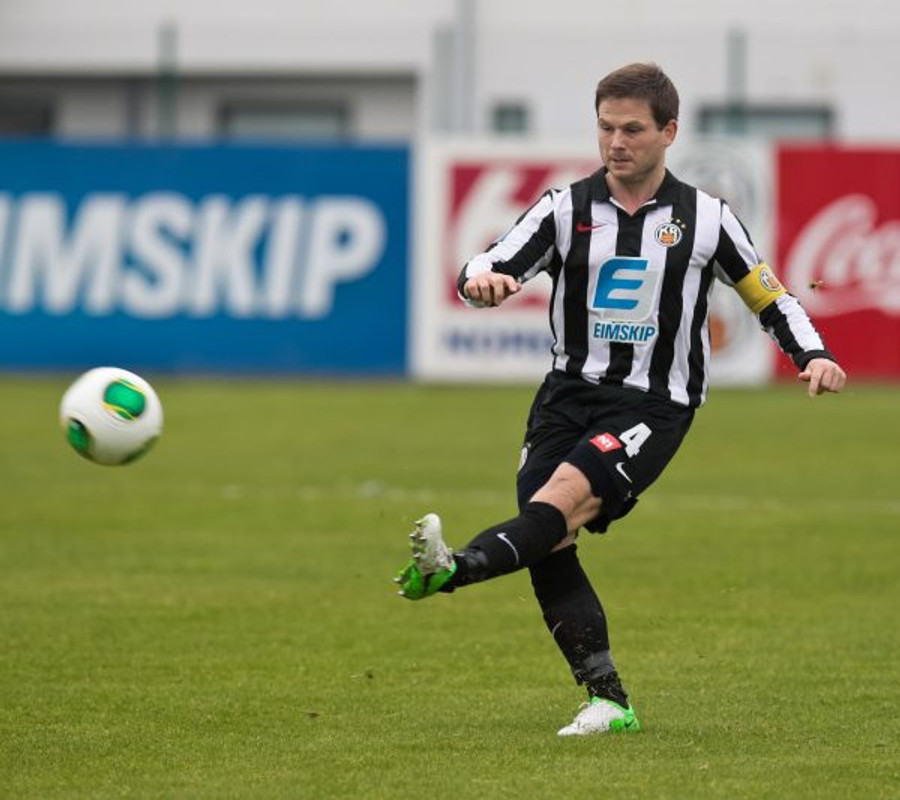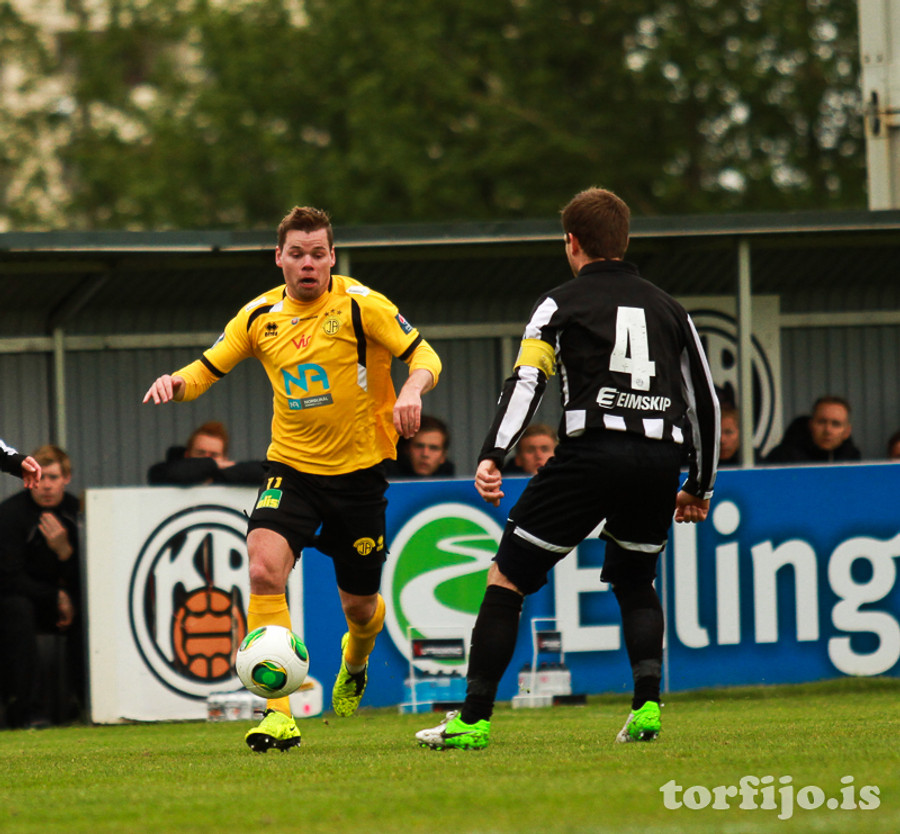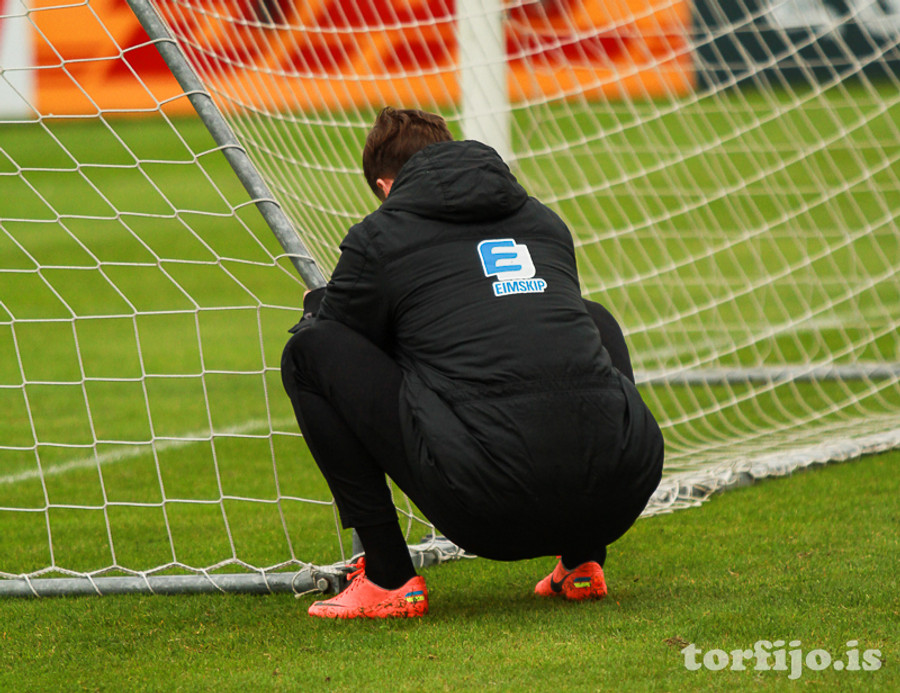 Það er líf að færast í þetta! Einar Logi með þrumuskot rétt fyrir utan teig. Beint á Hannes en hann átti þó í vandræðum með kraftinn í því og kýldi boltann afturfyrir.