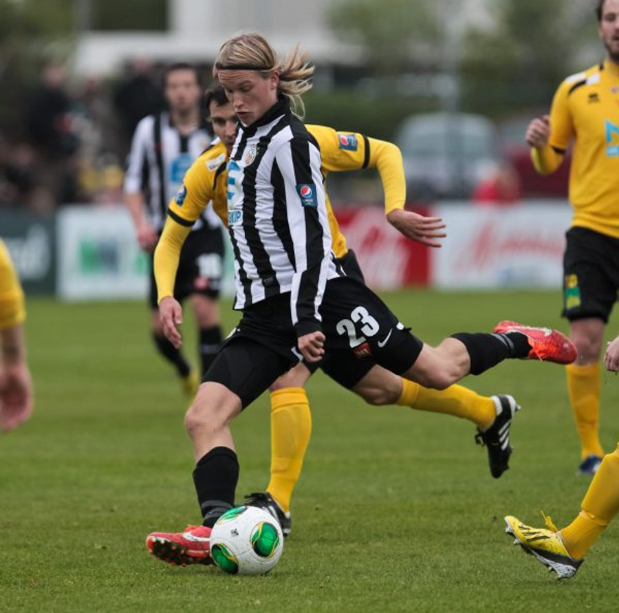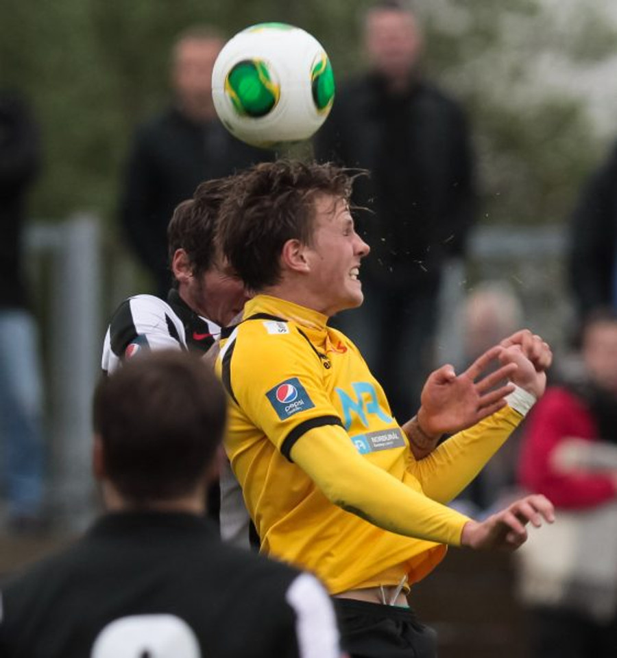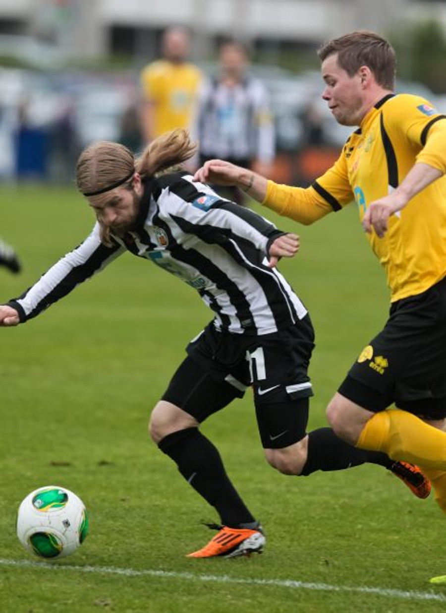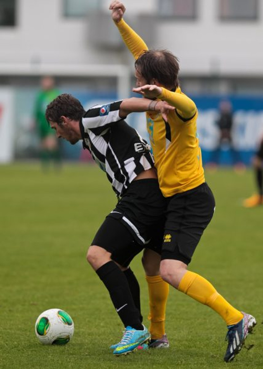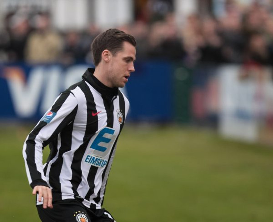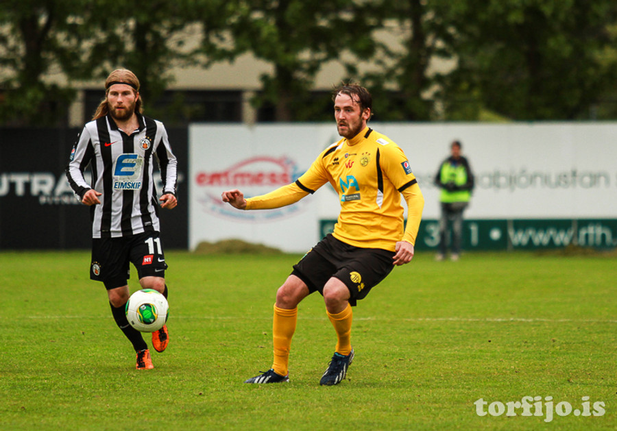 Það er líf að færast í þetta! Einar Logi með þrumuskot rétt fyrir utan teig. Beint á Hannes en hann átti þó í vandræðum með kraftinn í því og kýldi boltann afturfyrir.