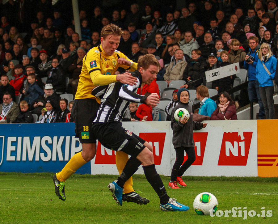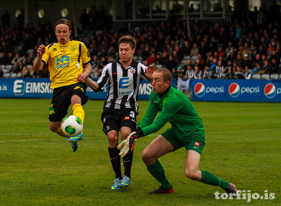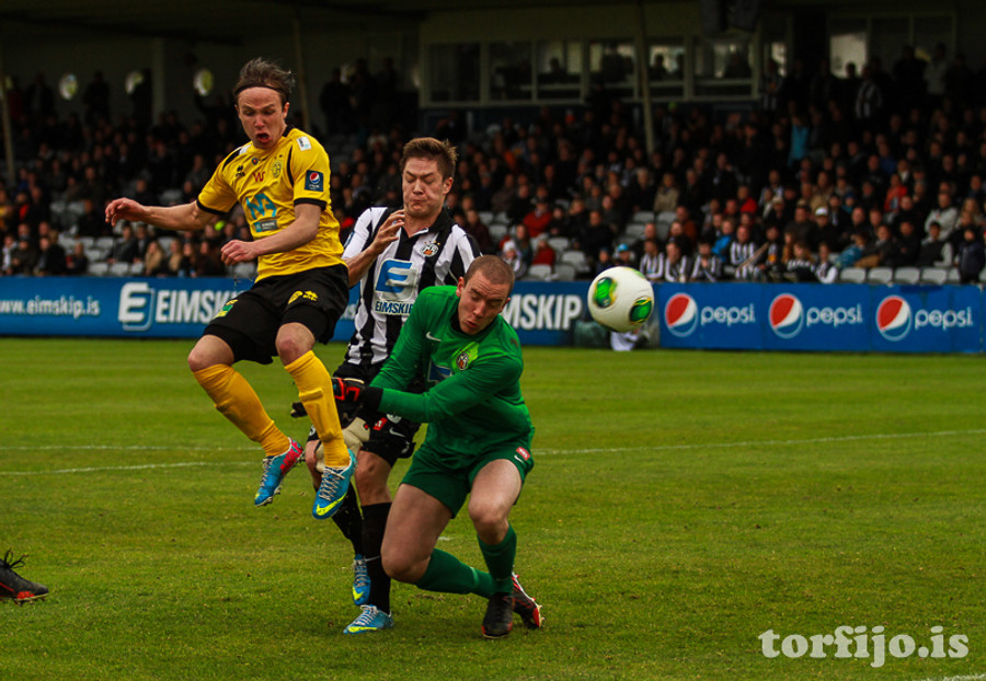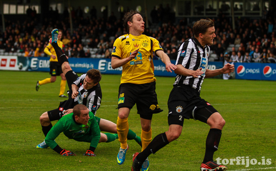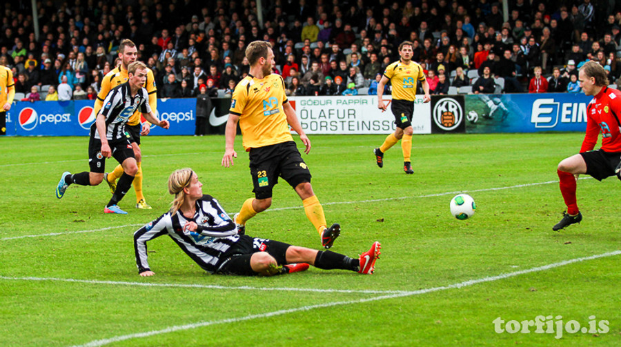 Furness fékk góða sendingu frá Garðari Gunnlaugssyni upp hægri kantinn og fyrirgjöf hans rataði á Andra Adolphsson sem náði fæti til boltans og hann fór framhjá Hannesi í markinu.
