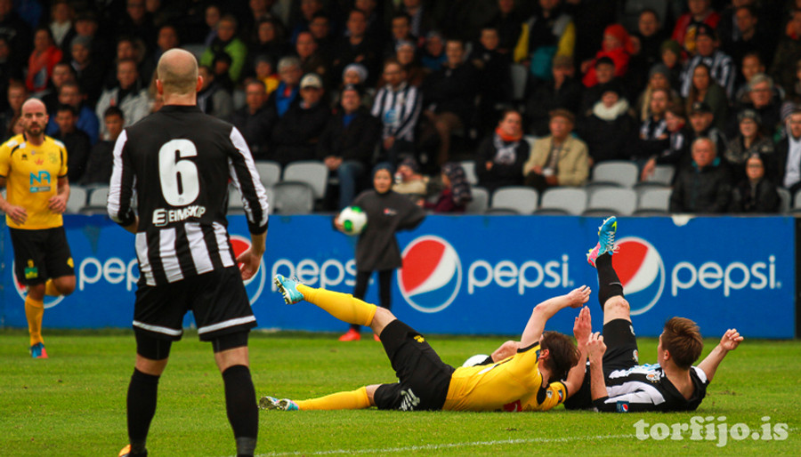Andri Adolphsson á frábæra "in-swing" fyrirgjöf frá vinstri en enginn þriggja frírra manna ÍA inni á teignum ná að teygja sig í hann. Fyrirgjöfinn skoppar í stöngina. Þarna mátti ekki miklu muna.