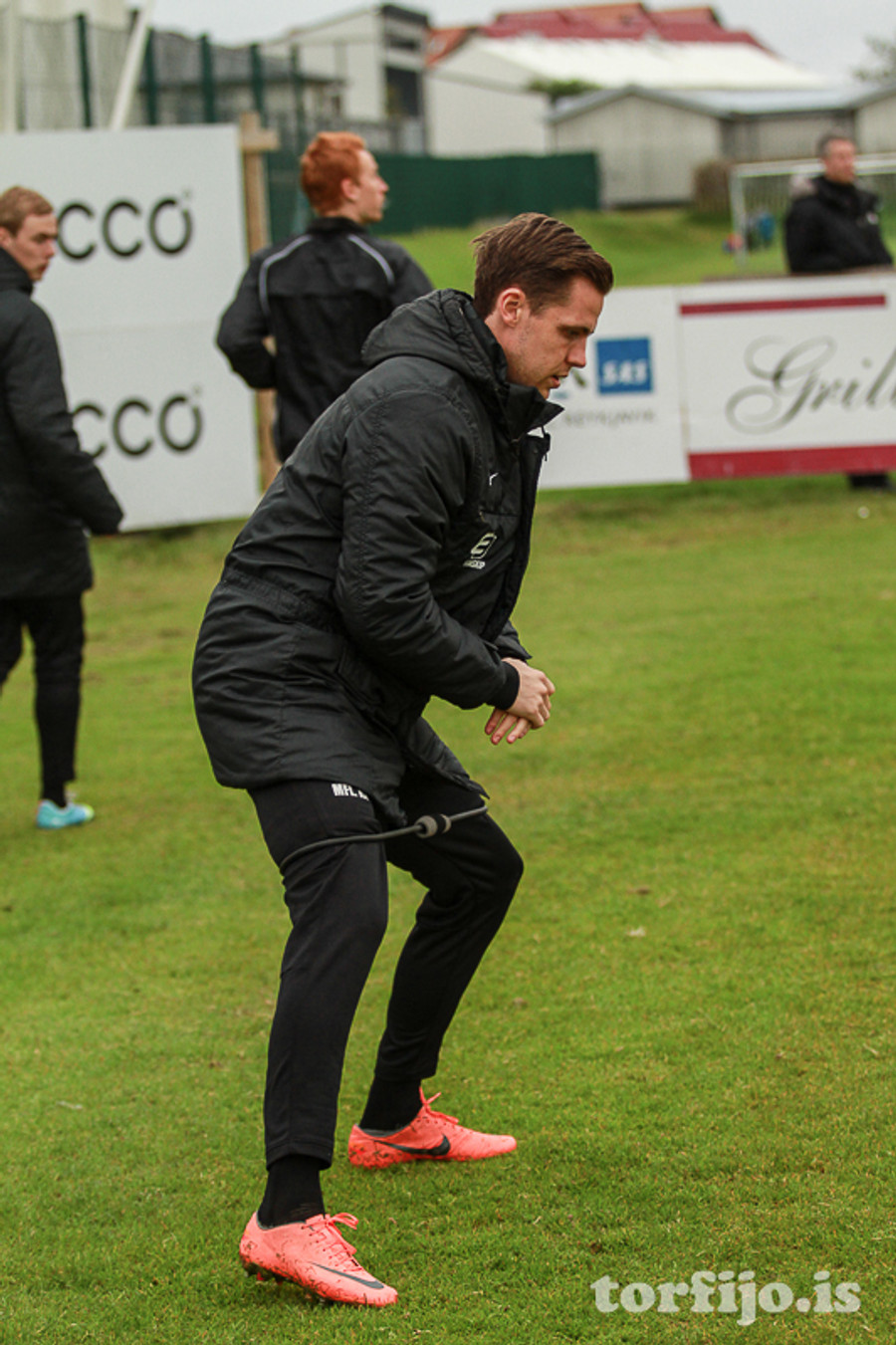 Spurning er með þáttöku Kjartans Henrys í leiknum. Hann spilaði ekki nema síðustu sekúndurnar í Hafnarfirðinum um daginn. Það gæti að sjálfsögðu líka farið eftir gangi leiksins.