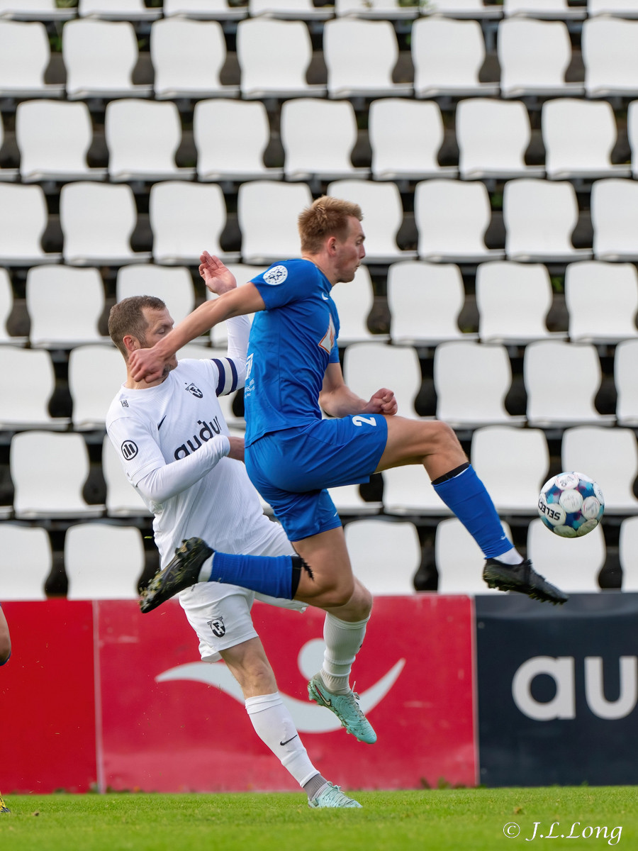 Tómas Orri rifinn niður rétt fyrir utan teig, Gunnar beitir hagnaðar reglunni og Dagur Örn nær skotinu úr fínu færi en beint á Marcel.