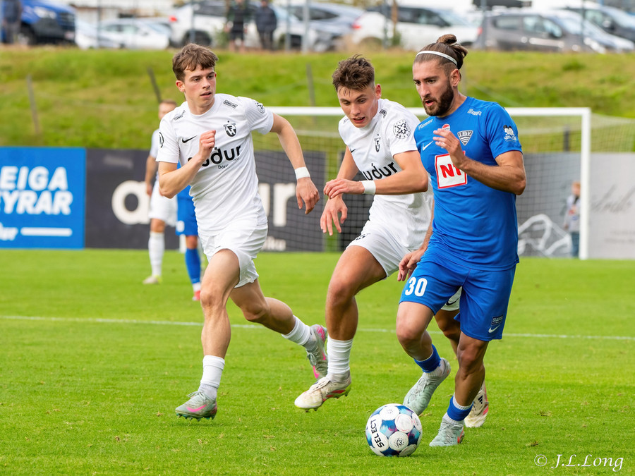 ÍBV fer í skyndisókn og eru bara að sleppa í gegn. Þá er Dagur Örn búinn að taka sprettinn, teig í teig og rétt nær að tækla boltann í horn áður en að skotið kemur.