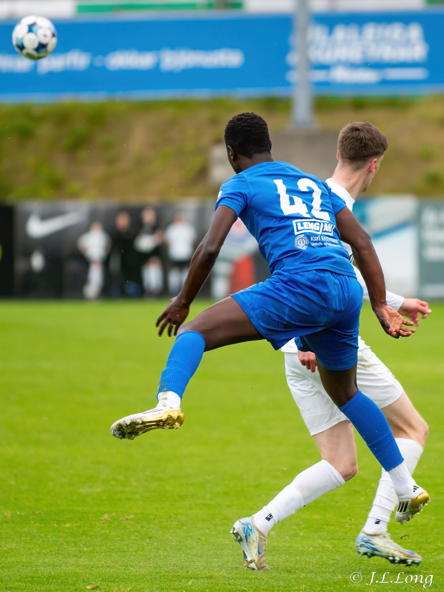 Fer í 50-50 bolta við Oliver og er aðeins seinni í boltann.
