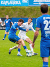 Kjartan Kári með fastan bolta inn í teig og Björn Daníel framlengir á Dag. Hann tekur skotið en í varnarmann.