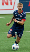 Frábær sending inn fyrir á Viðar Örn sem er kominn einn í gegn en hann misreiknar boltann eitthvað og færið rennur út í sandinn.