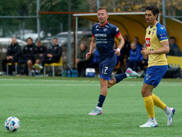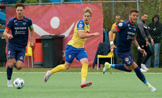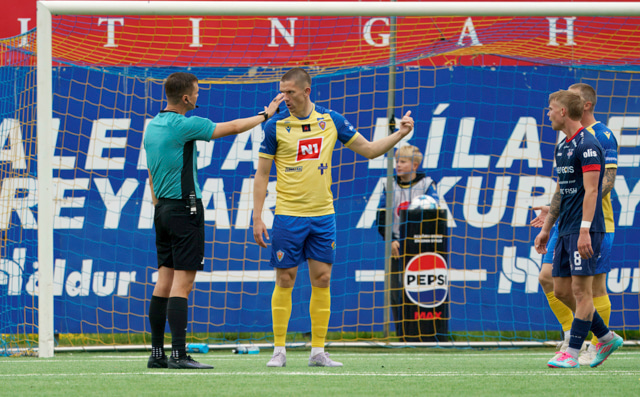 Gunnar Jónas Hauksson á erfitt verkefni fyrir höndum. Hann er að öllum líkindum að dekka Birni Snæ Ingason eða Hallgrím Mar, það öskrar á gult, Gunnar Jónas fær gult spjald er 4 í stuðul á Epic, skemmtilegt.