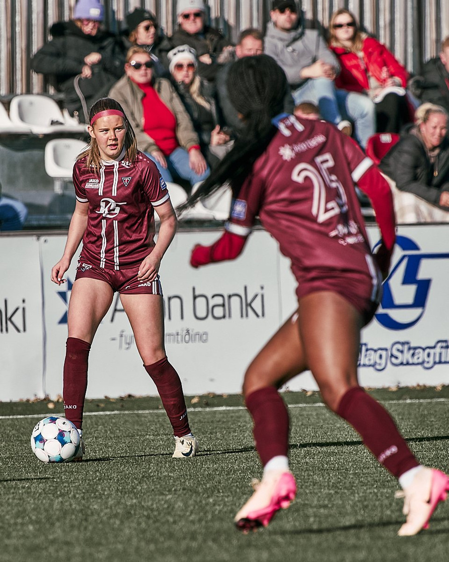 Andrea Rán tekur aukaspyrnu á miðjum helmingi Stólanna, fyrirgjöf en Laufey skallar hann aftur fyrir