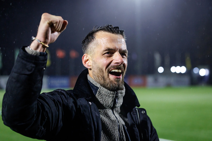 Helgi fagnar þessu gífurlega og rífur sig úr treyjunni.