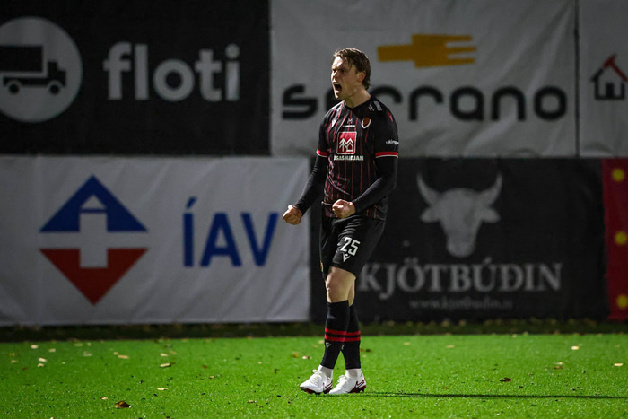 Hafliði Breiðfjörð er á vellinum og náði þessum frábæru myndum af fögnuðinum eftir markið.