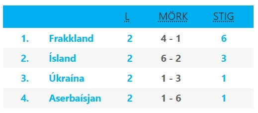 Ísland er í öðru sæti riðilsins en það mun gefa þátttökurétt í umspili fyrir HM.