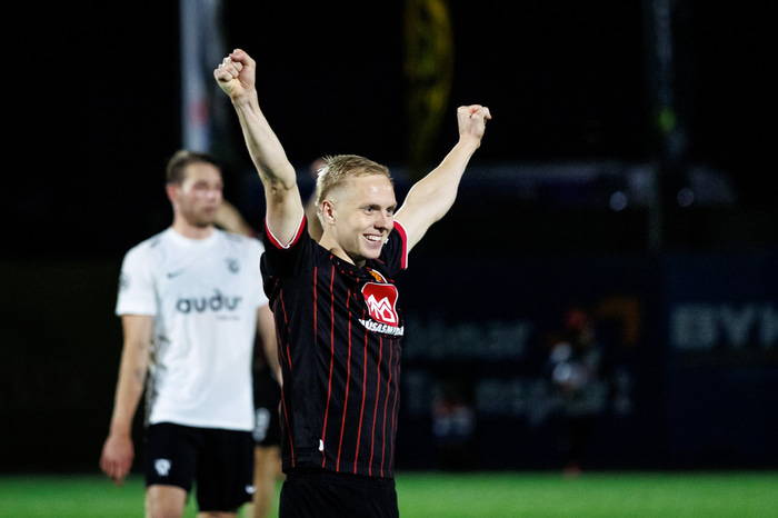 Kristinn Jónsson heldur áfram að koma með flotta bolta inn á teiginn. Oliver Ekroth hreinsar boltann í hornspyrnu.