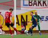 Frábær bolti inn í teig frá Georg, beint á Stokke. Fyrsta snertingin hjá honum hins vegar ekki nógu góð og boltinn fer full langt frá honum þannig að Smit nær að rjúka út og taka boltann.
