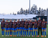 Boltinn endar útfyrir upp á varamannaskýli Norður-Írlands, snjórinn er það mikill að boltinn situr sem fastast bara ofan í snjónum, upp á skýlinu