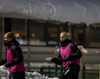 Landsliðskonur höfðu í nógu að snúast í gær þrátt fyrir að leiknum hefði verið frestað.