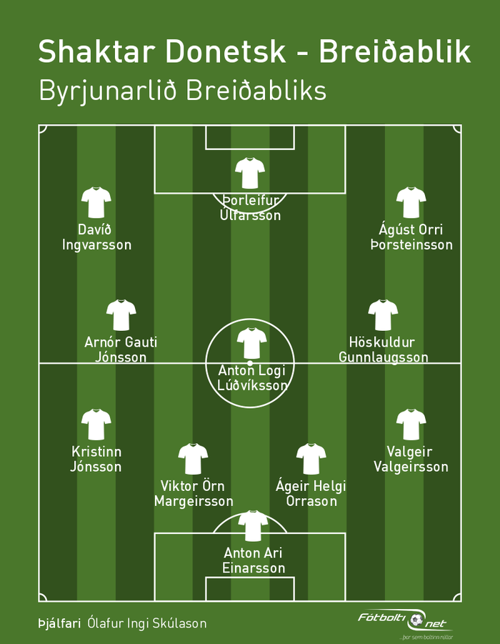 Þrjár breytingar á liðinu frá jafnteflinu gegn KuPs á dögunum. Damir, Viktor Karl og Tobias Thomsen víkja fyrir þá Ásgeir Helga Orrason, Anton Loga Lúðvíksson og Þorleif Úlfarsson sem leikur sinn fyrsta byrjunarliðsleik fyrir Blika á tímabilinu í kvöld.