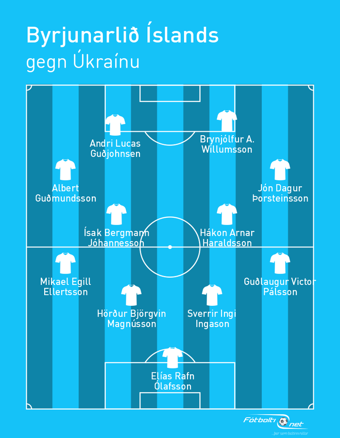 Jón Dagur Þorsteinsson kemur á hægri vænginn fyrir Jóhann Berg Guðmundsson og þá kemur Brynjólfur Andersen Willumsson inn fyrir Kristian Nökkva Hlynsson.