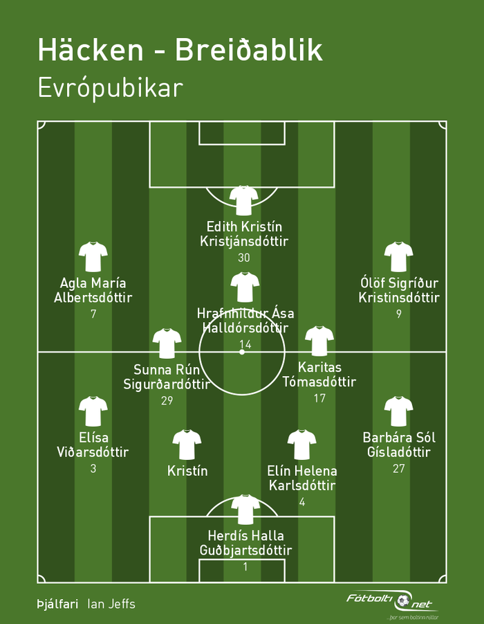 Hjá Häcken eru landsliðskonurnar Fanney Inga Birkisdóttir og Thelma Karen Pálmadóttir. Fanney er í markinu hjá Häcken og Thelma byrjar á hægri kantinum.