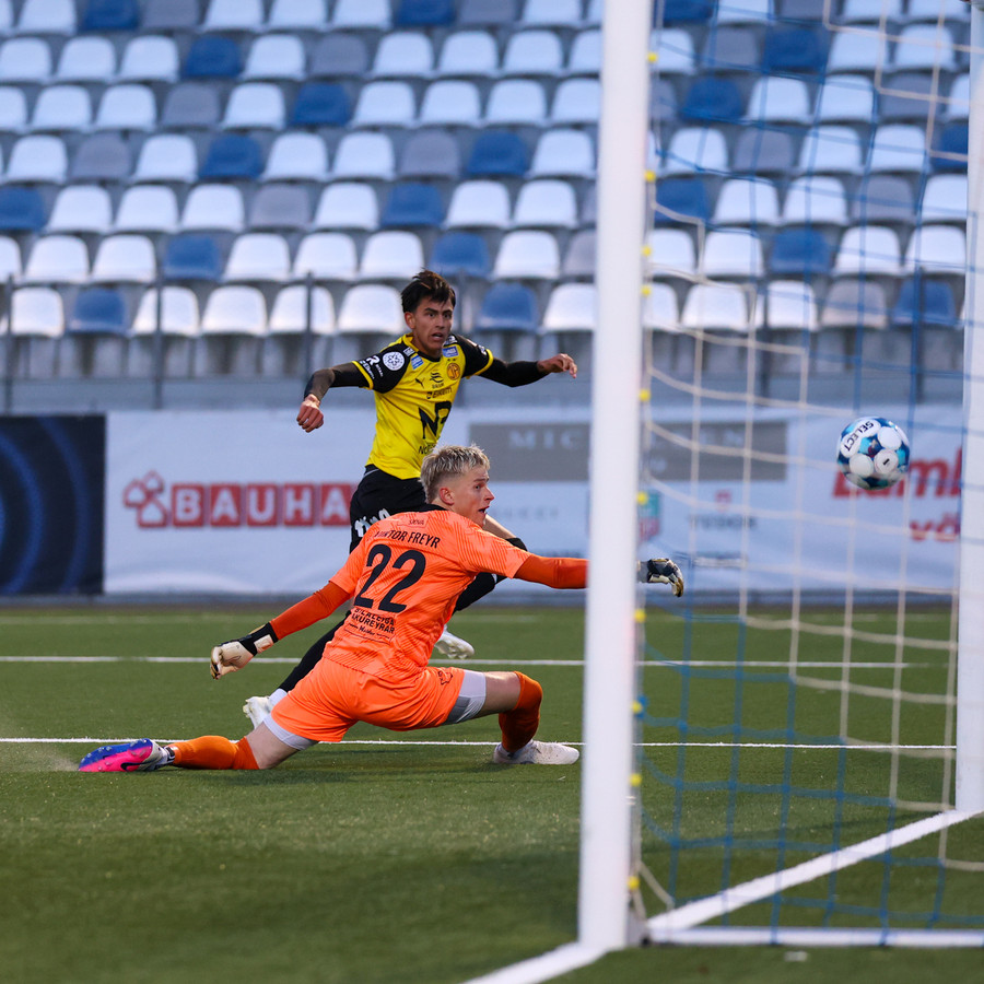 Skemmtileg sókn hjá Frömurum, Tibbling með flotta sendingu út á Kennie sem á viðstöðulaust skot yfir markið