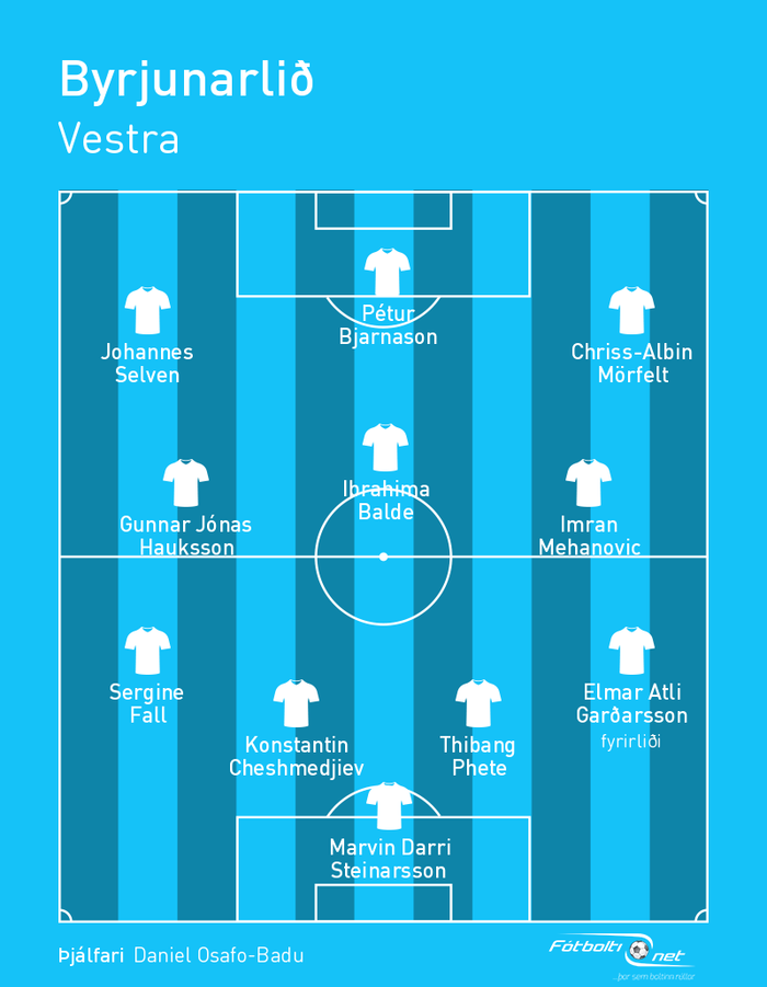 Jón Þór Hauksson sem stýrði Vestra undir lok síðasta tímabils er á varamannabekk Vestra og á skýrslu sem einn af þjálfarateyminu. Hann tilkynnti í oktober eftir mót að hann yrði ekki áfram með Vestra en hann er Daniel Badu til halds og traust hér í dag.
