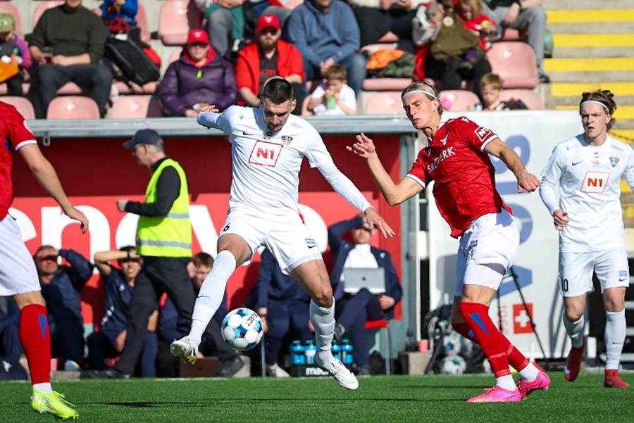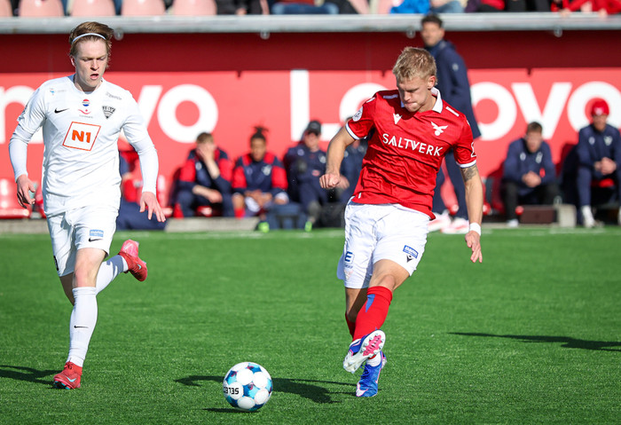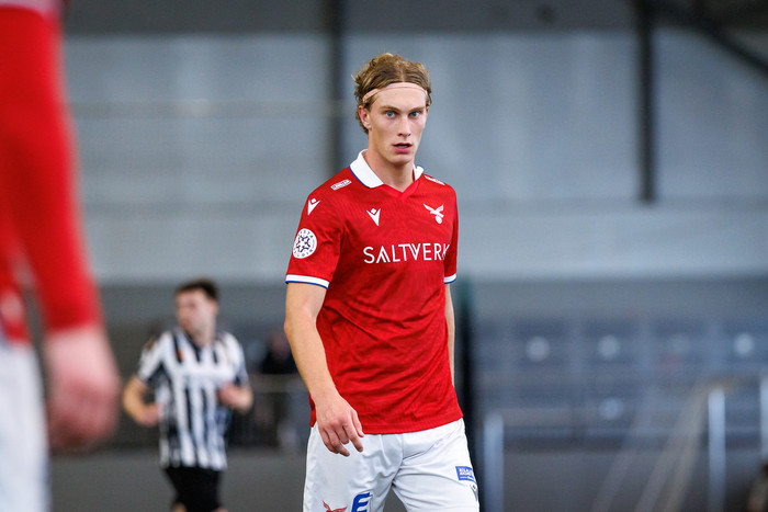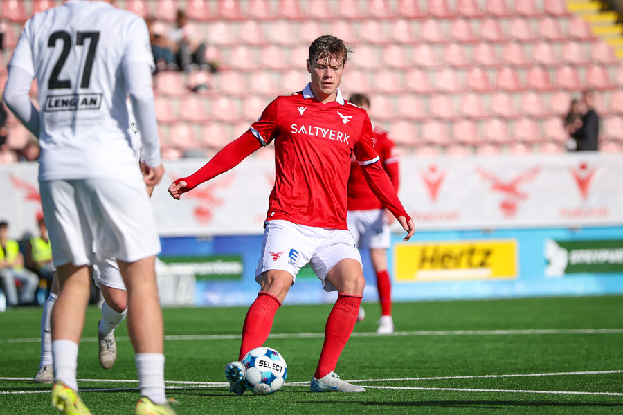 Filip á vinstri kantinum á misheppnaða sendingu inn í teig sem endar hjá Alex sem gefur á Viggó. Hann á lúmska tilraun sem hefði steinlegið inni ef boltinn hefði ekki farið naumlega framhjá