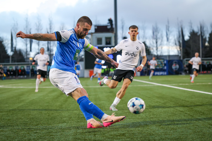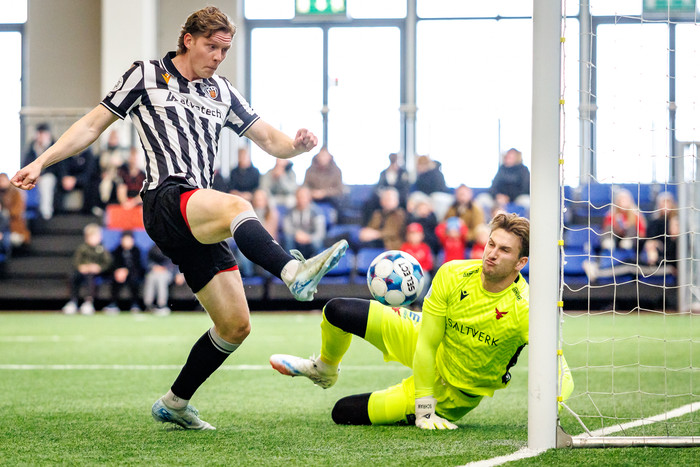 Laus bolti á hægri kantinum og Gils er ekkert eðlilega fljótur. Hann stingur menn af og nær að koma boltanum fyrir en það er enginn inn í teig. Baldur Kári nær svo boltanum á jarðri teigsins og tekur skotið en framhká.