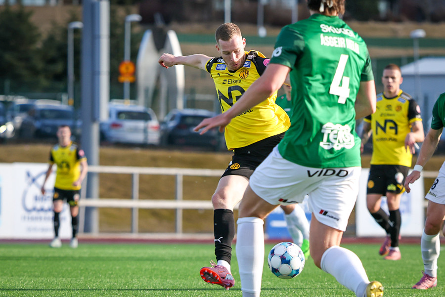 Blikar halda betur í boltann en Skagamenn þéttir. Hægara sagt en gert að brjóta þá á bak aftur.