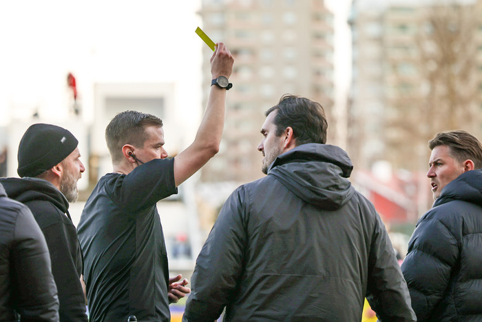 Nýbúinn að fá gult spjald og brýtur af sér á miðjum velli. Blikar kalla eftir rauða spjaldinu en hann sleppur með tiltal. Að mínu mati rétt að hlífa Markúsi.
