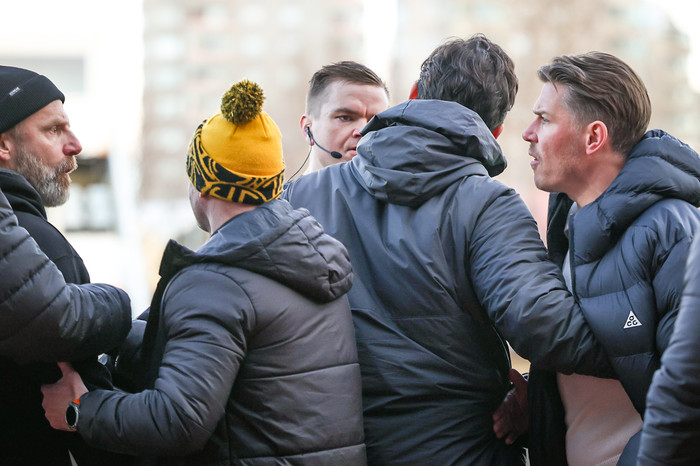Hálftími í leik, Óli Skúla búinn að fara yfir byrjunarliðið með stuðningsmönnum og fólk farið að velja sér sæti í stúkunni.
